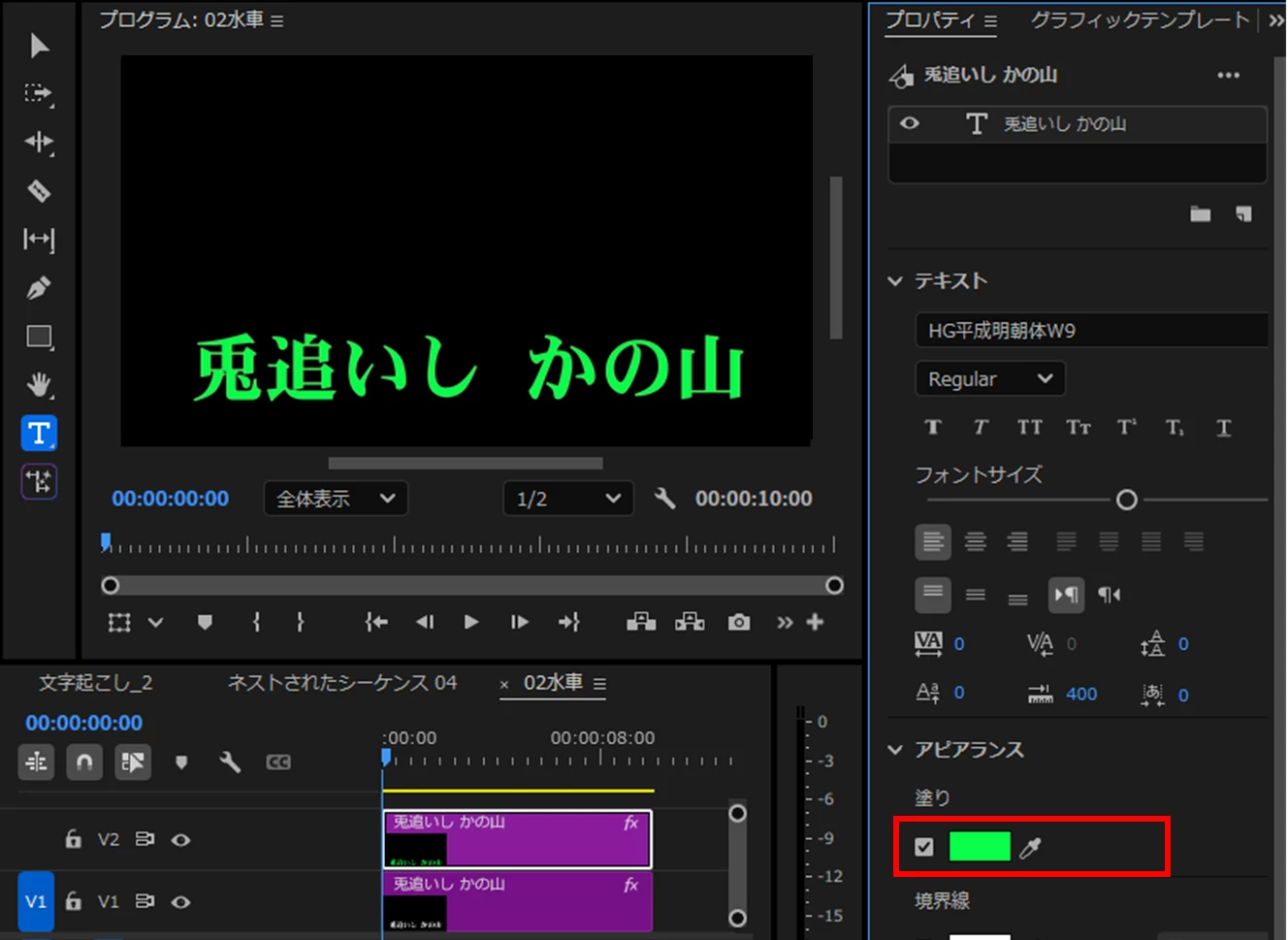 カラオケのように一文字目の右端の辺りから右へ色が変わっていくテロップのプリセットを作りたいです。