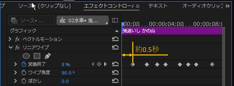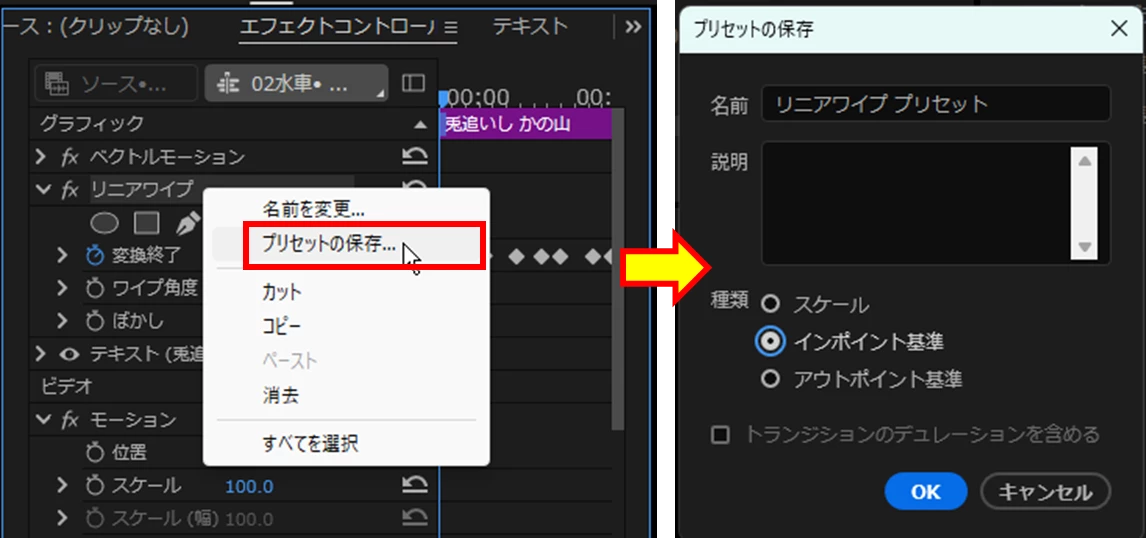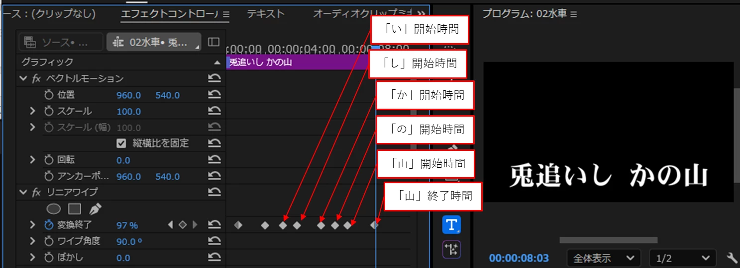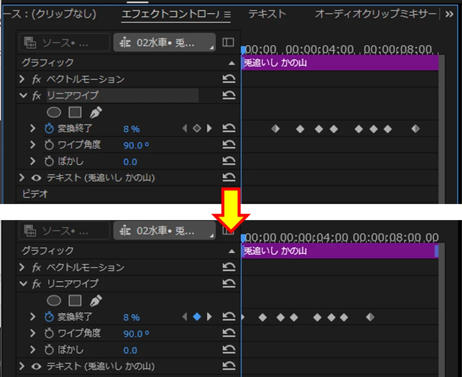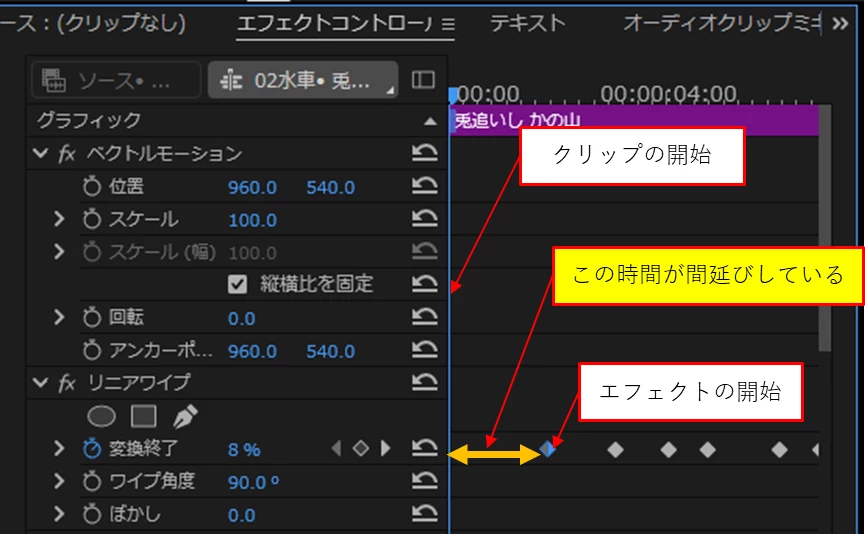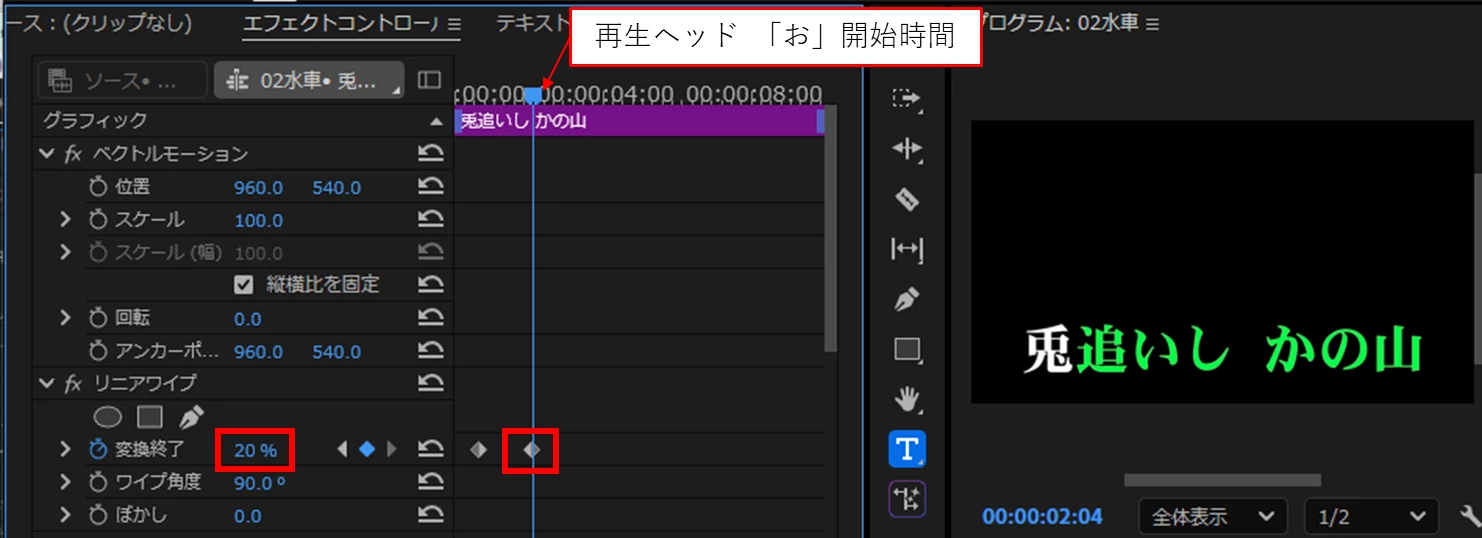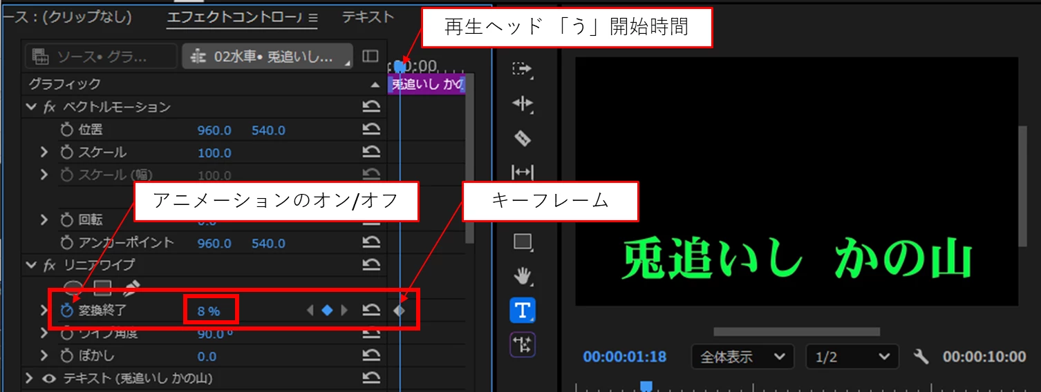 テキストレイヤーを重ね、上のレイヤーにクロップやリニアワイプを適用して試してみたのですが、初期設定だと画面左端からエフェクトが適用されテロップの位置に来るまでにかなり時間差が生まれてしまいます。上記のようなプリセットを作るにはどうすればいいのでしょうか。