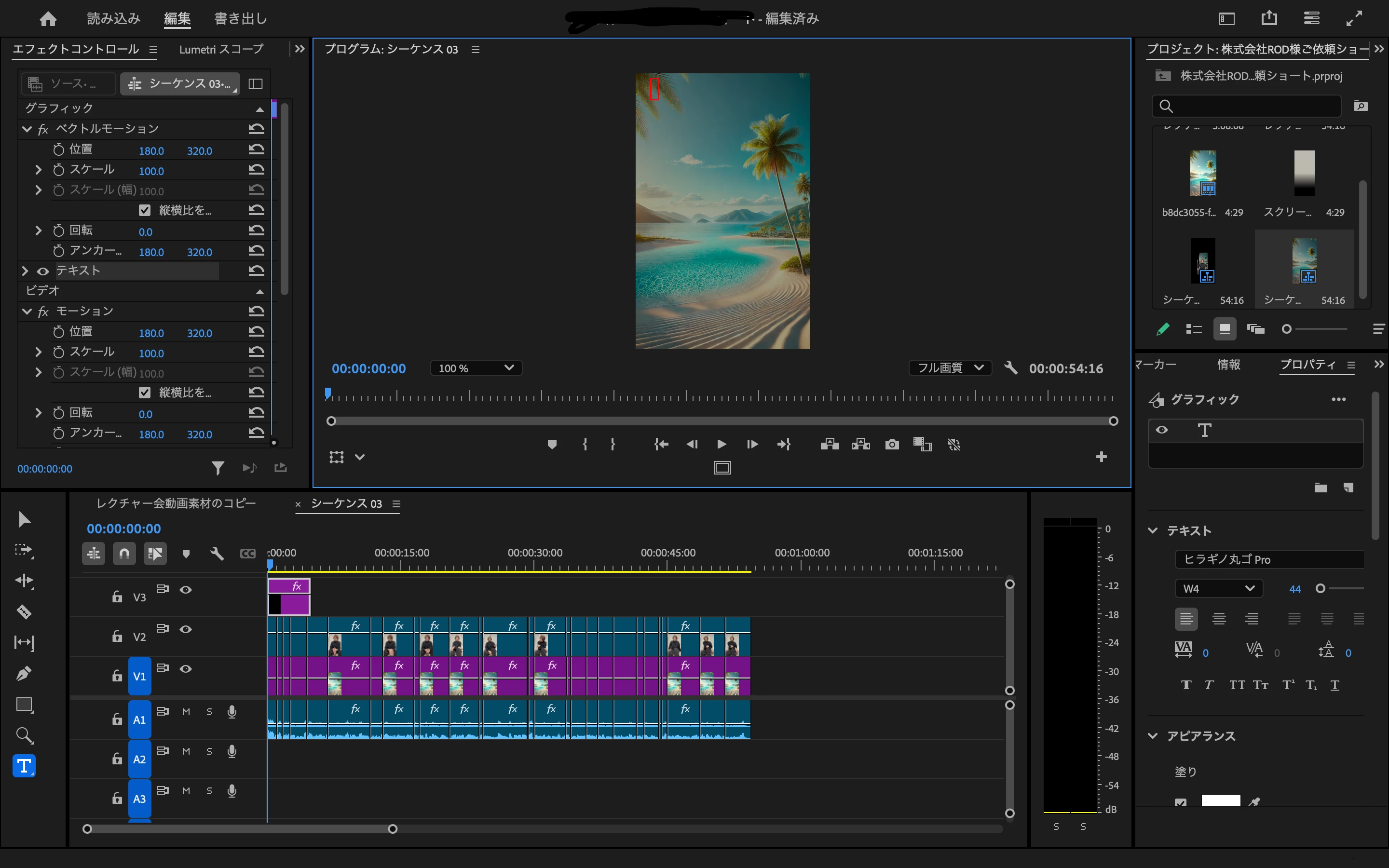 V1トラックは背景、V2トラックは動画、V3トラックはテロップですね。