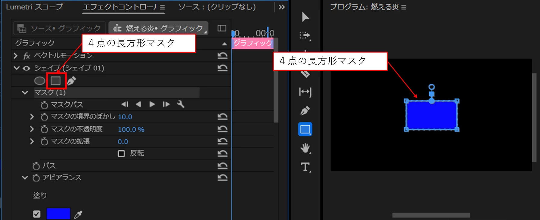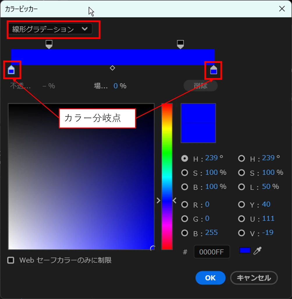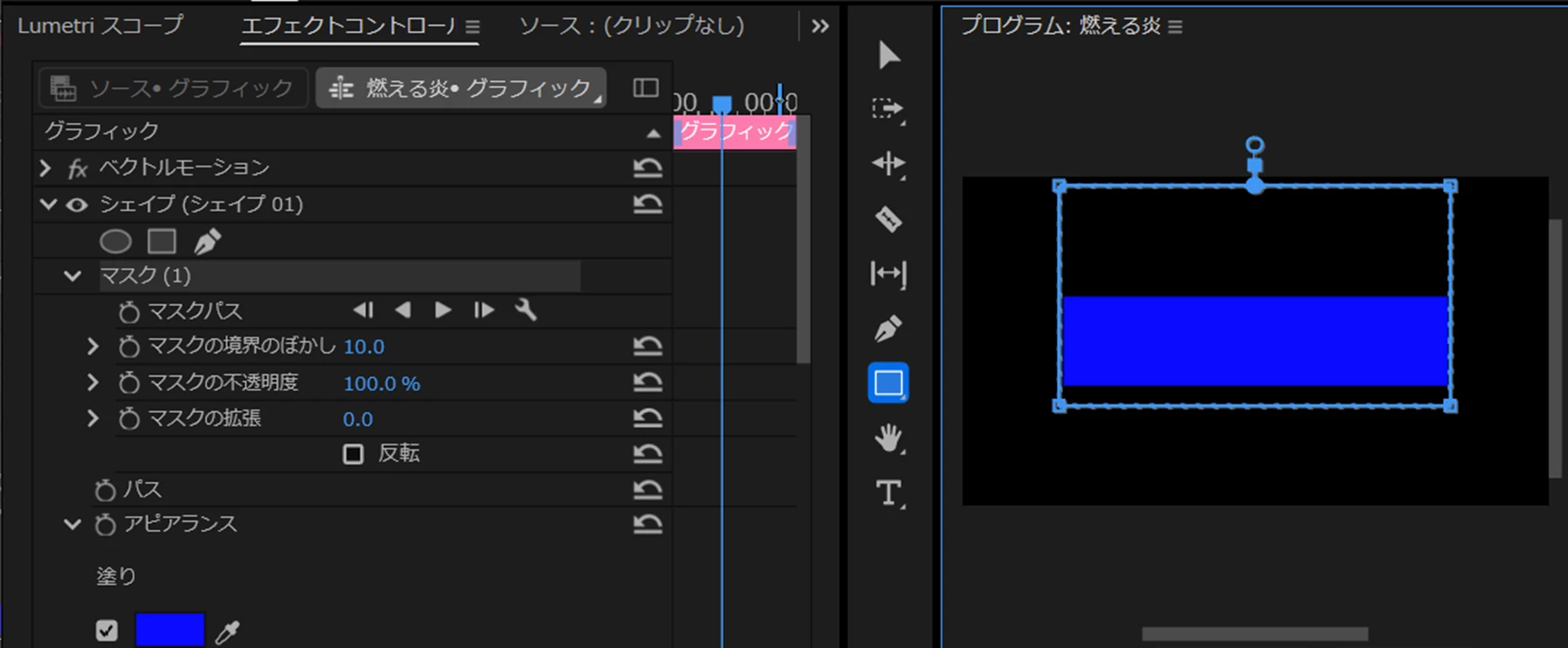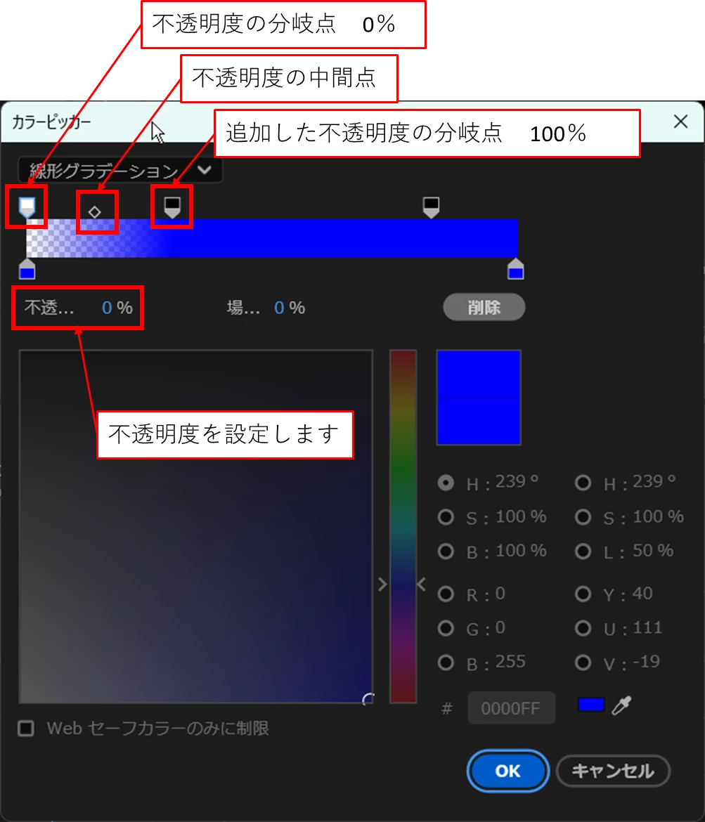 不透明度を設定したグラデーション塗りに「ラフエッジ」を適用すると下図のように左右の端を変形させることができます。
