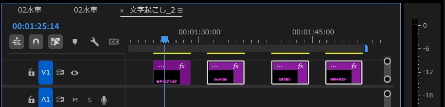 *最初に②の操作を繰り返してテロップクリップを必要個数作成してもOKです。