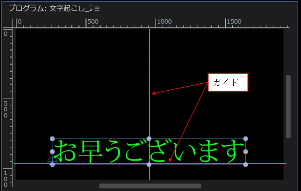 ①最初に基準となる位置にテロップを作成したテロップクリップを作成します。