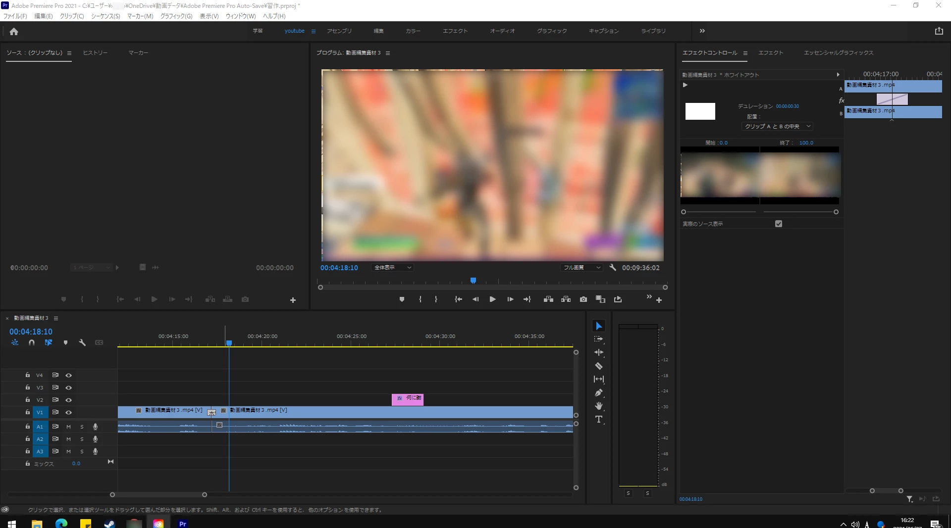 ただ、再生したときにディゾルブがかかっておらず、画面が切り替わるだけになってしまいます。