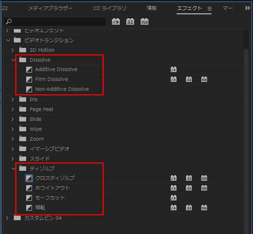 バージョンを上げた辺りからディゾルブがクロスディゾルブしかありません。