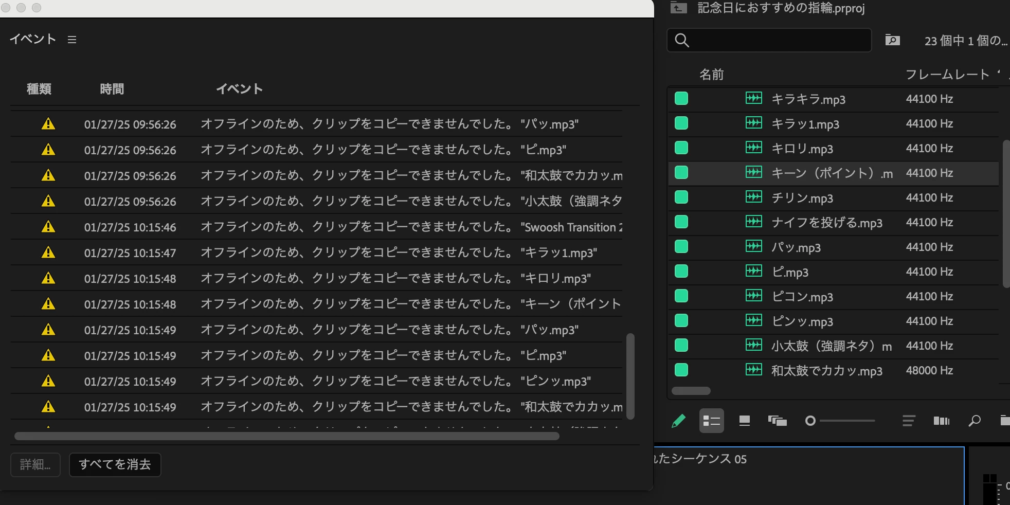 作品完成後にプロジェクトマネージャーで使ったファイルのみをまとめるのも良い方法の一つではあるのですが、後日の修正や改訂にそなえたご自身のお手元での保存の場合、使わなかった素材を修正や改訂で使うことになった場合などにそなえることや、今回のようなトラブルを防ぐためには、「使ったプロジェクトファイルと素材ファイルをそのまま保存する」方が、手間がかからず安全だと思います。
