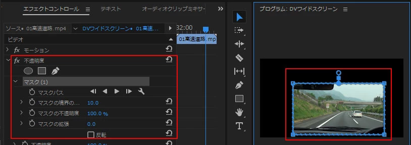 DV-NTSC ワイドスクリーン48kHzのシーケンスで、トラックマットキーを使い、画像の切り抜きをしたところ、用意したマスク素材とは違う範囲が切り抜かれてしまいました。