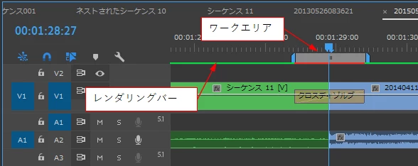 トランジション(ここではクロスディゾルブ)をかけているのですが、2つのクリップにまたがるようにかけているのに、クリップの切れ目でバツっと切り替わってしまいます。
