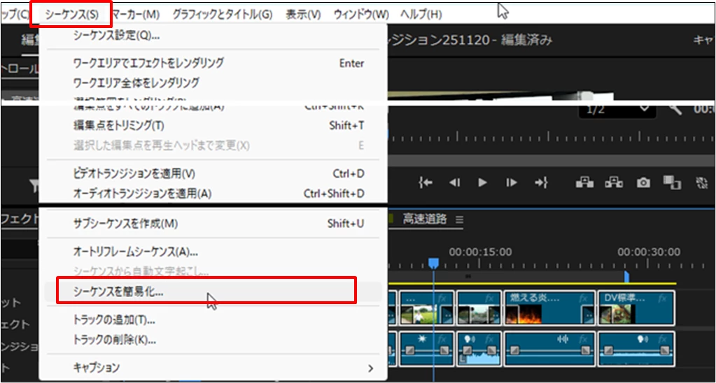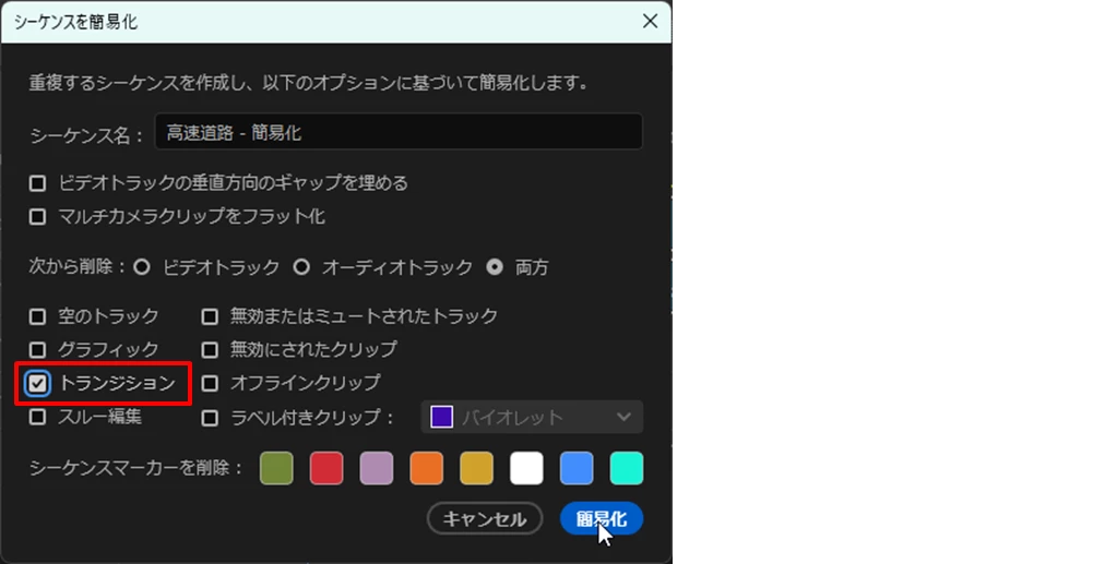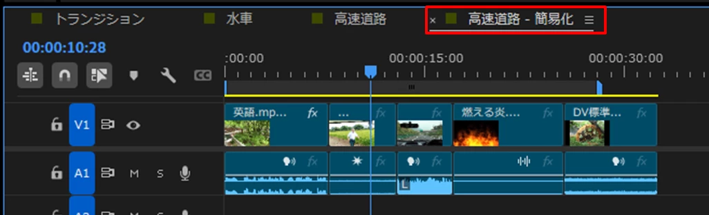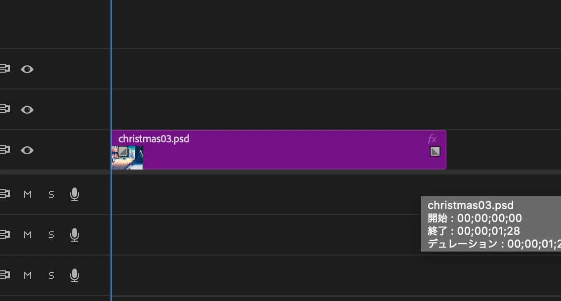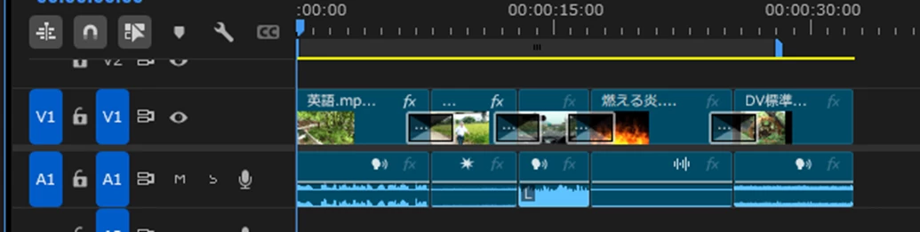 >このような感じで、素材の前後にトランジションがついてしまいます。