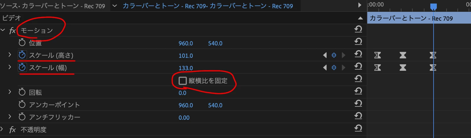 トランスフォームのスケール(縦横比を固定せずに)を使って画像を動かそうとすると、縦線が入ってしまいます。プリセットに保存して違う画像に適応させてもやはり縦線が入ってしまいます。どうしたら縦線が入らないように出来るのでしょうか?