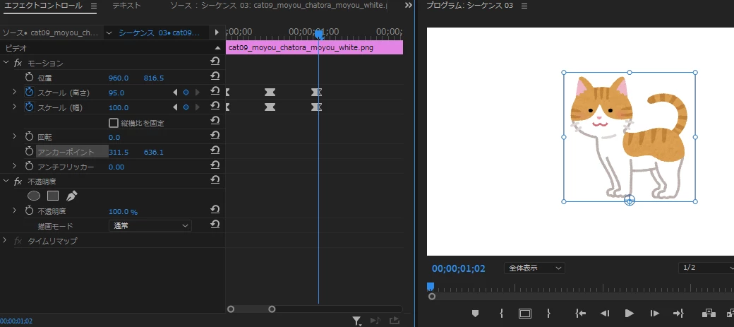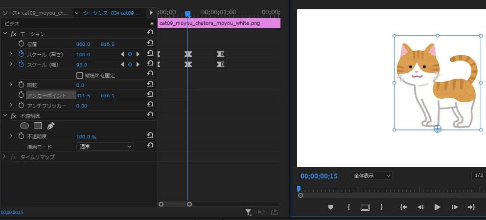 添付していただいた画像を拝見しますと、たしかにネコの画像に動きがついていないようですね……。
