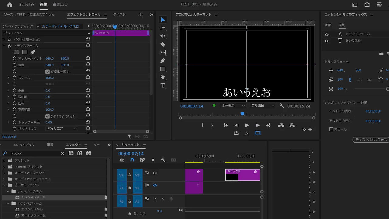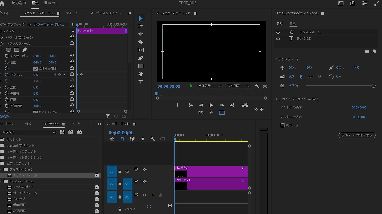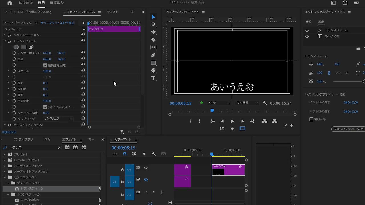 トランスフォームで、テキストを下位置の状態で、スケールのモーションを付けたいのですが、どうしてもテキストが斜めに出てしまいます。アンカーポイントの設定方法がなかなか分からずで困っております。
