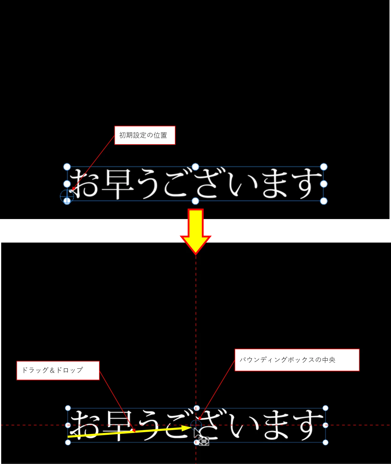 このアンカーポイントをドラッグ&ドロップで、バウンディングボックスの中央に移動します。
