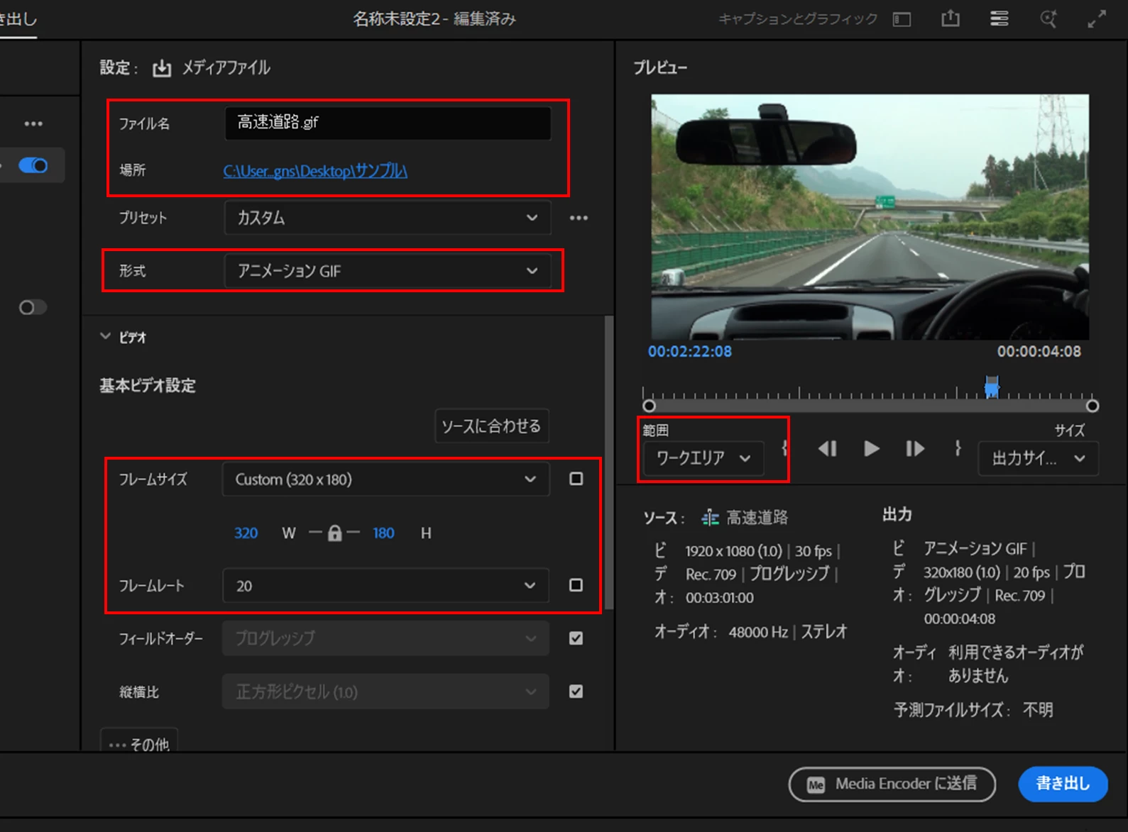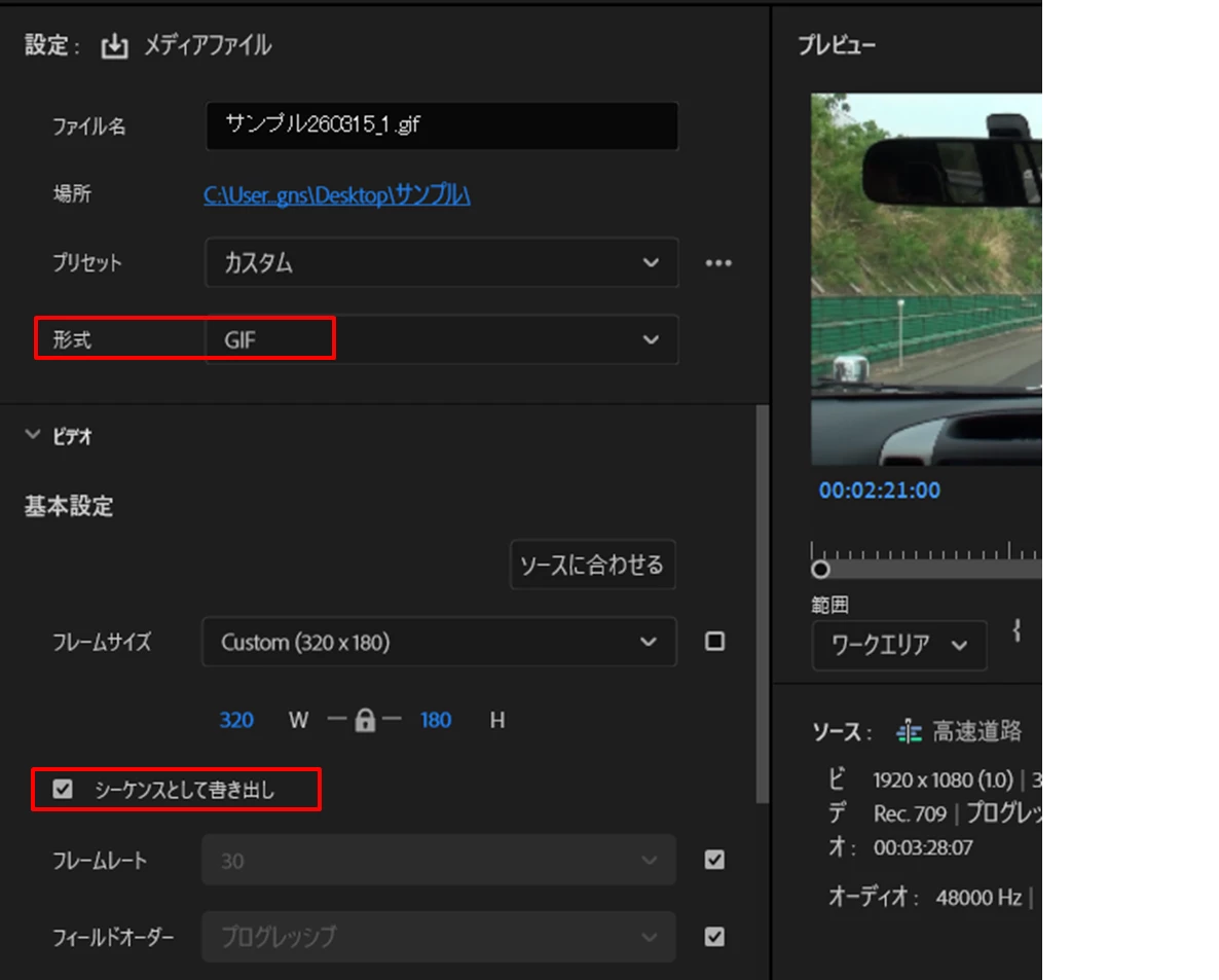 それと、以前Gifの書き出しを教えていただきましたがうまくいかず