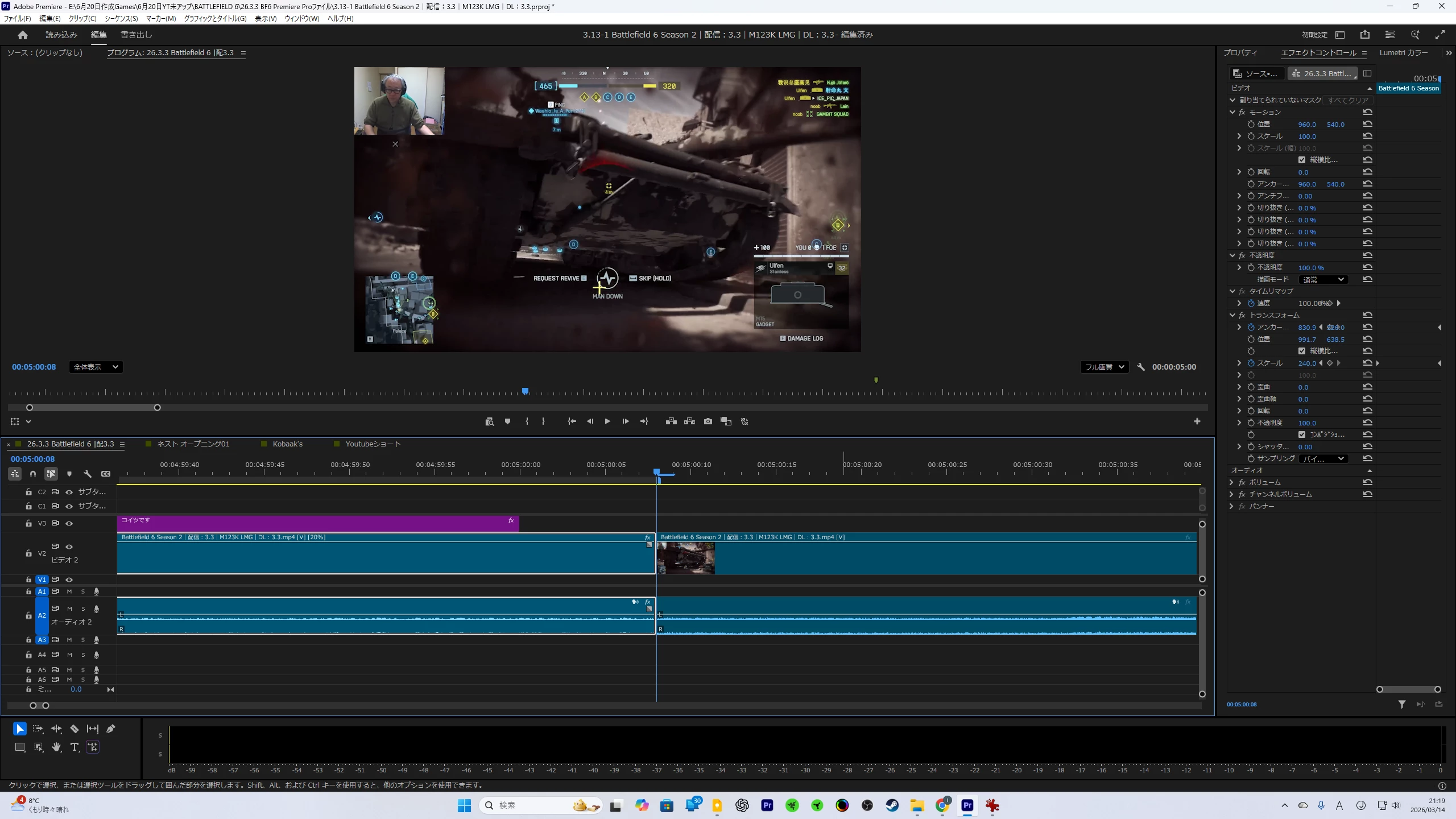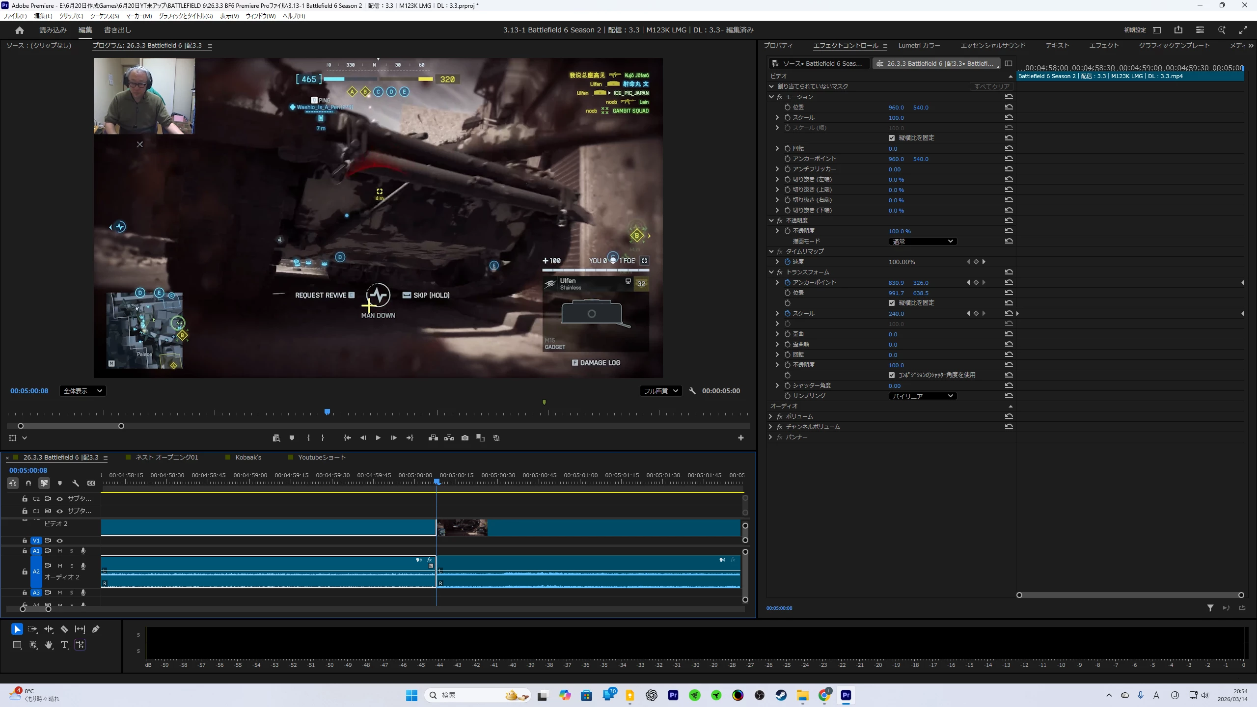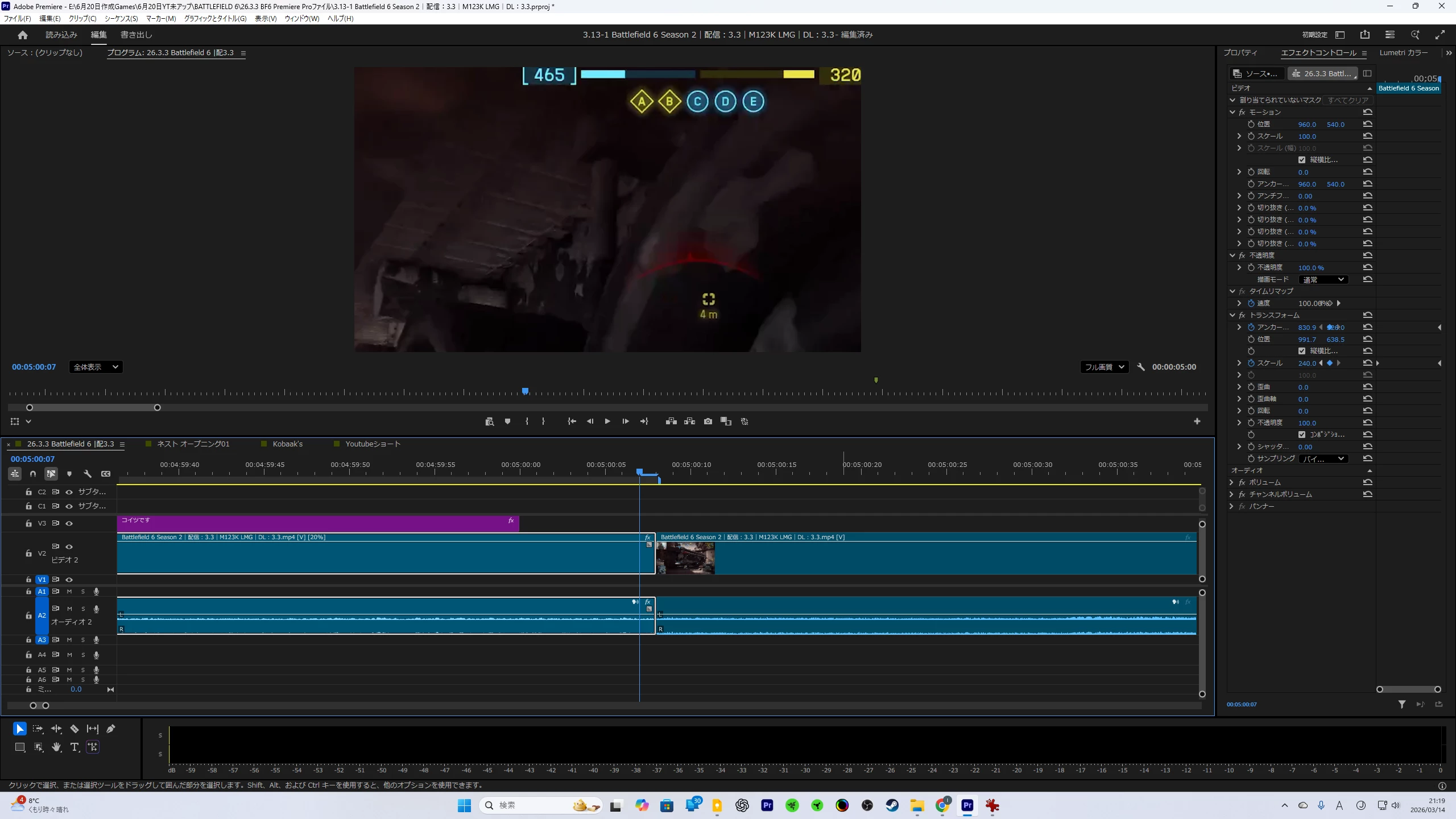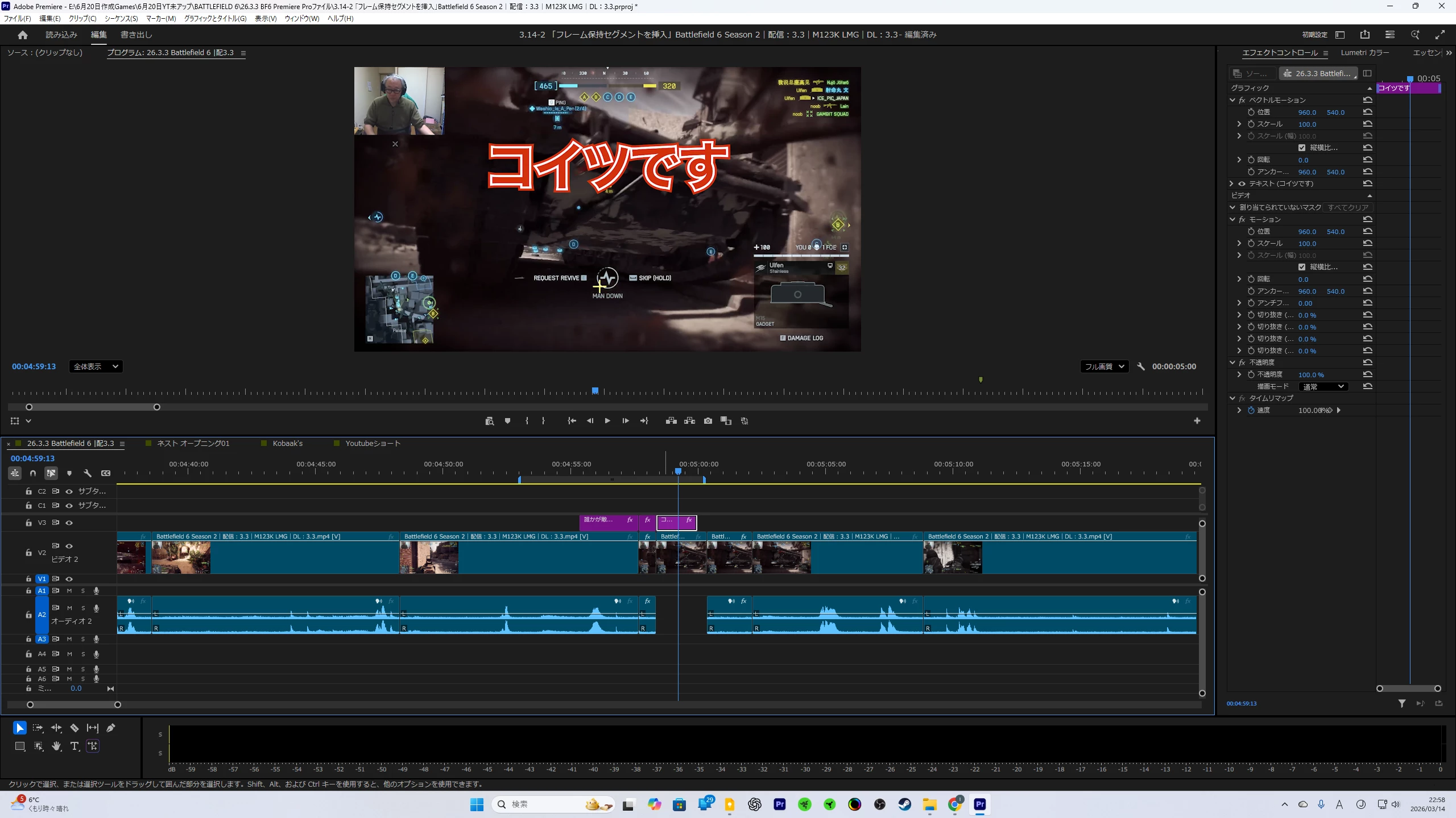 スローモーションを使うので、それらの一連のシーンをカットしているのですが、