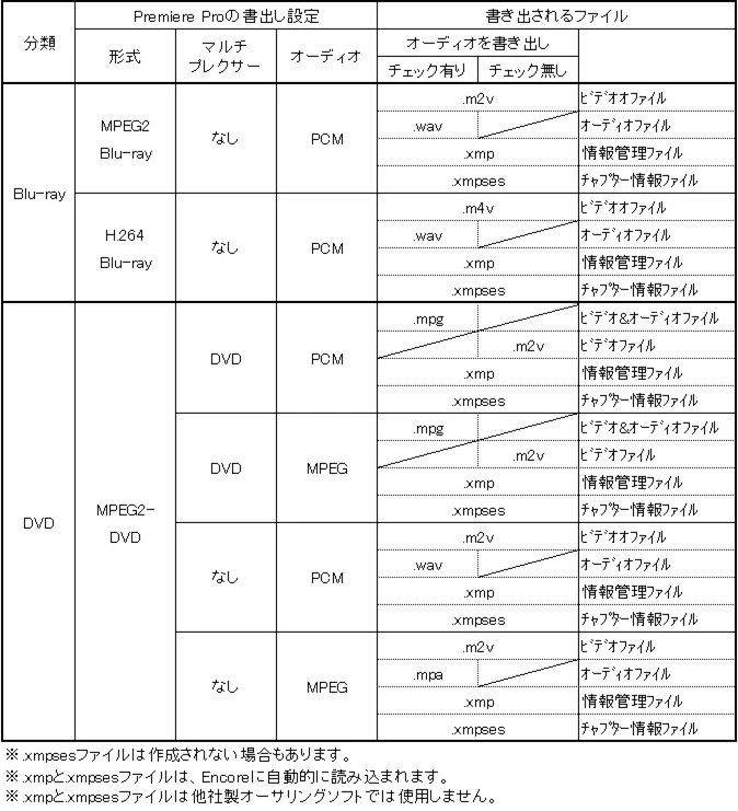 もし、書き出しでDolby Digitalにこだわる必要がない場合は、下表のような組み合わせで映像と音声を書き出すことが出来ます。
