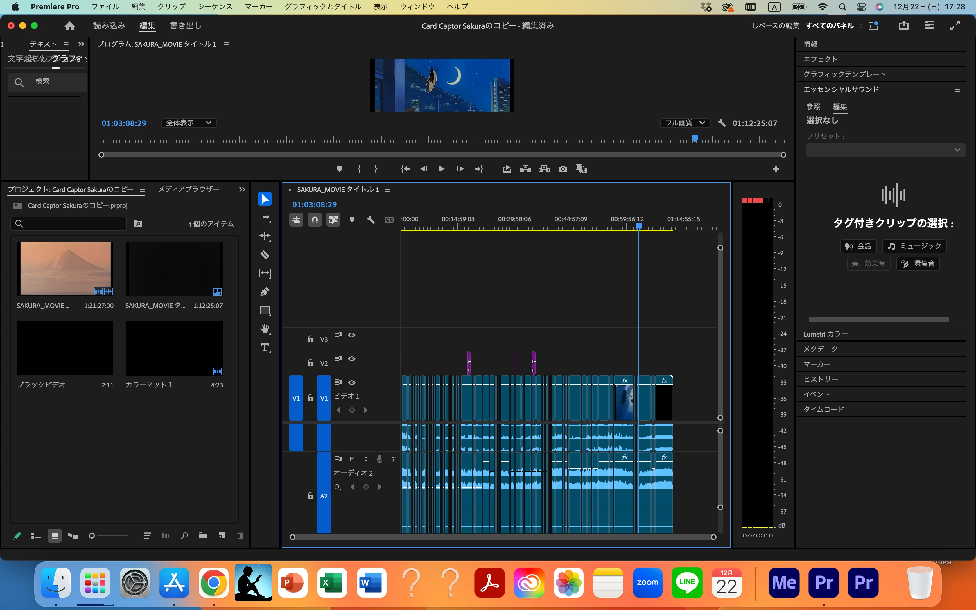 コメントありがとうございます。現在画像のような状態なのですが、150kwさんのアドバイス通りオーディオとビデオを全選択してやってみましたが、ビデオのみネストされた状態になってしまい解決しませんでした。画像からなど、何かしらアドバイスをいただけましたら幸いです。