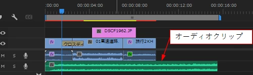 一応プロジェクトからシーケンスをタイムラインにドラッグ&ドロップすれば追加したサウンドがオーディオトラックに反映されるようです。