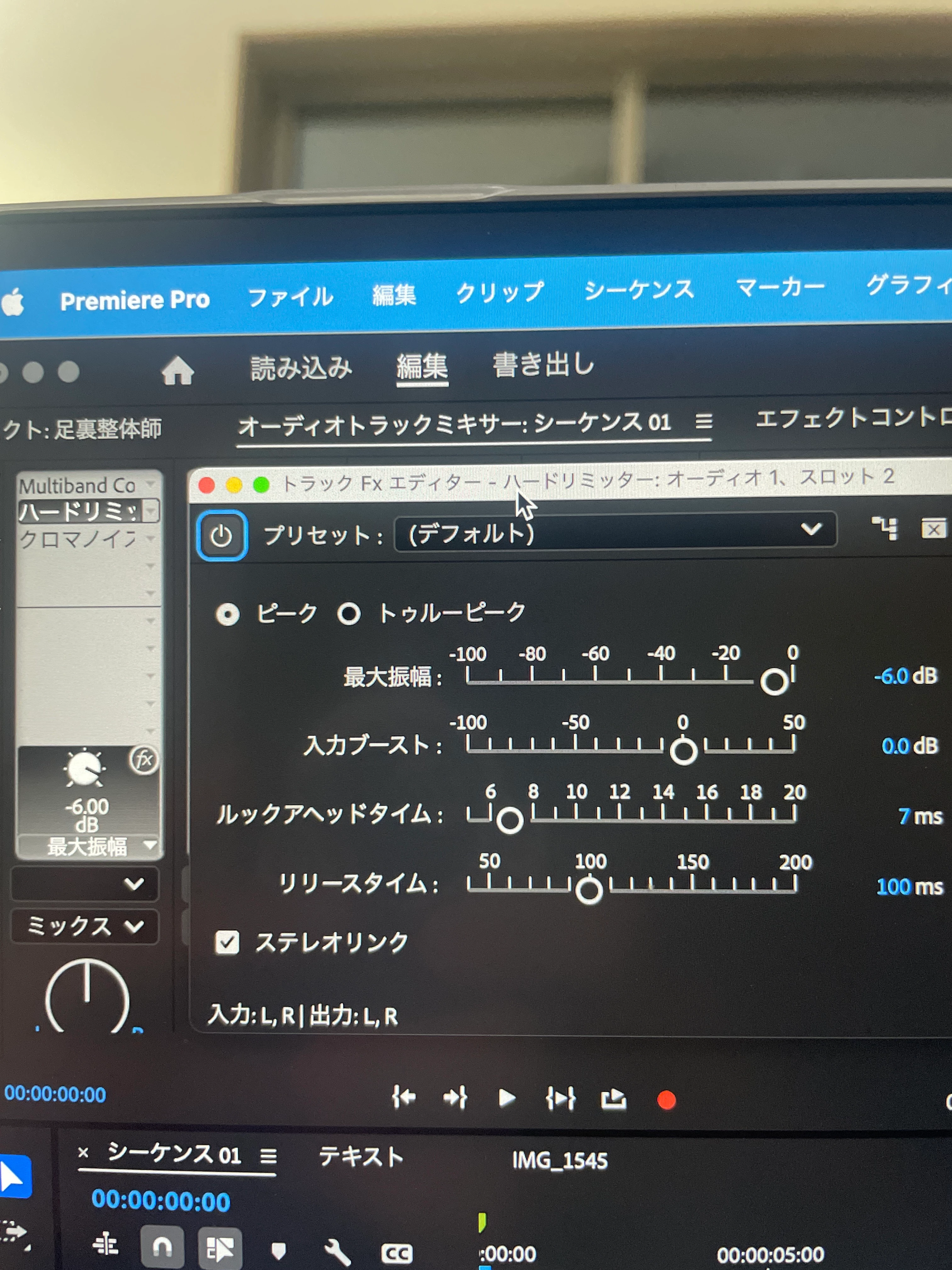 Premiere Proの場合には、ハードリミッタよりも手前にチューブモデルコンプレッサーのプリセットにある「ラジオレベラー」を入れてみて、そこから各パラメーターを調整するのも手かと思います。