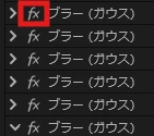 追従するブラーを作成するために、ブラー(ガウス)にマスクをかけ1フレーム毎にキーフレームを打ち込み、追従させるようにしました。
