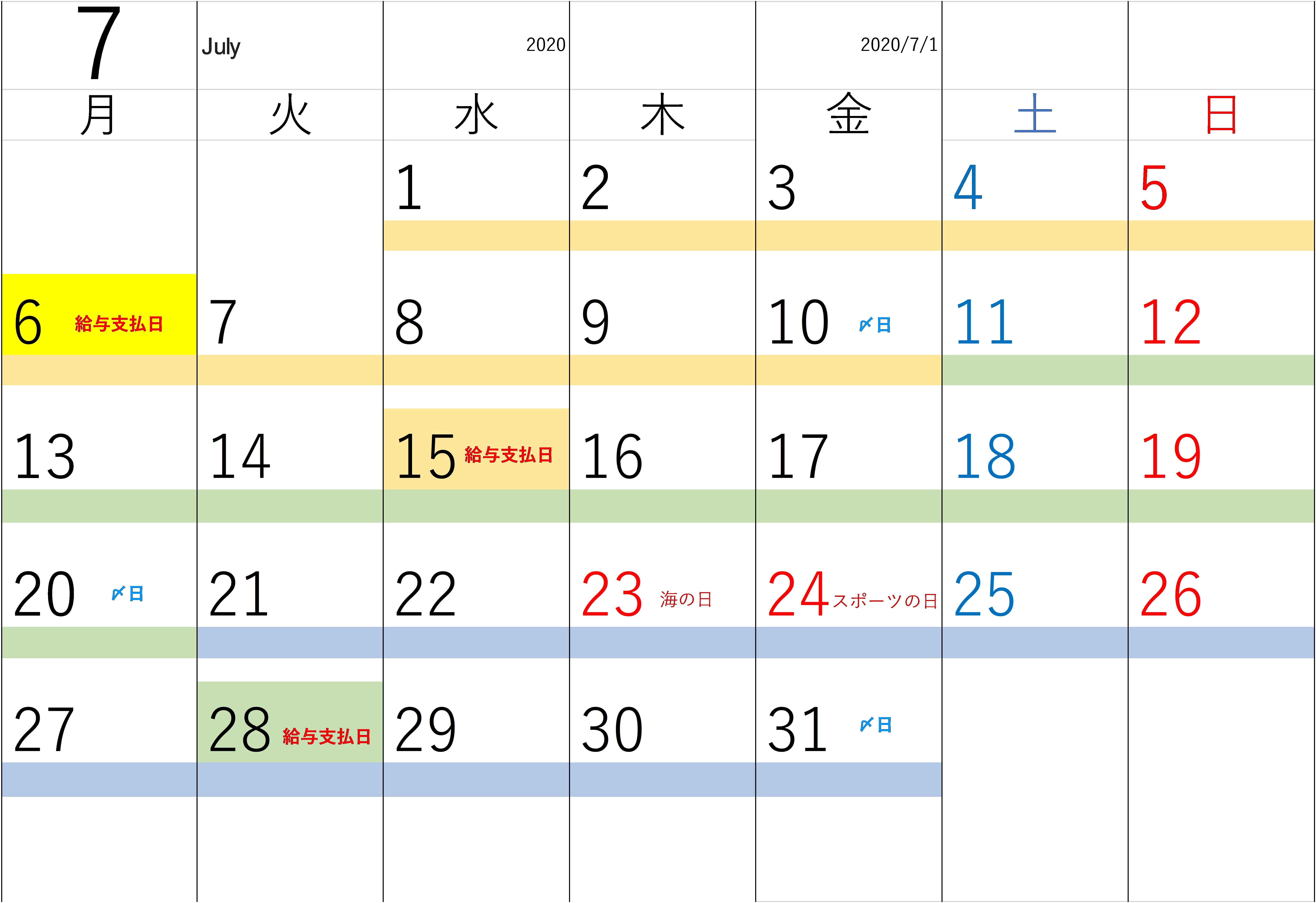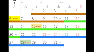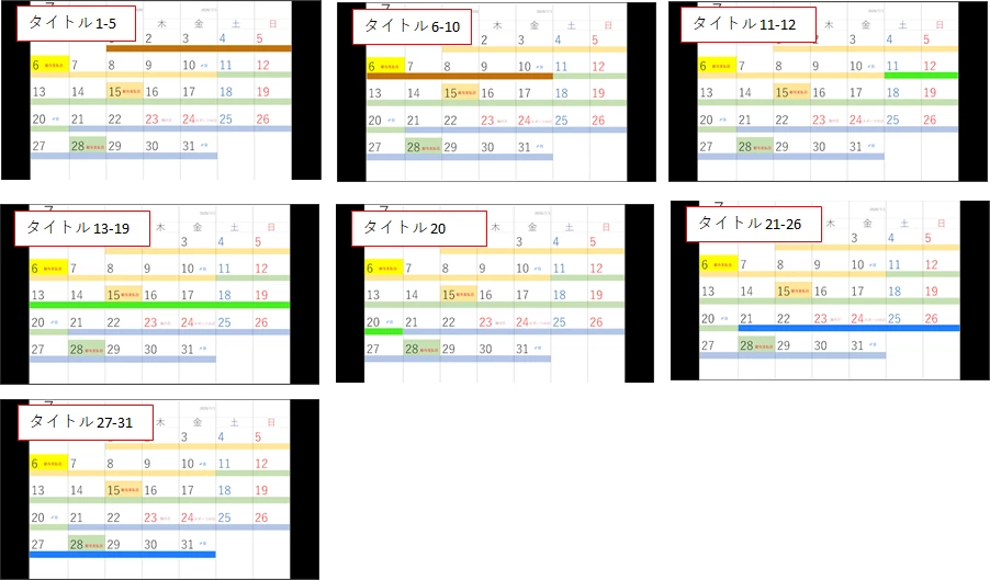 図のカレンダーの1日から10日の下に色が塗られていない状態から黄色いバーを左から順番に