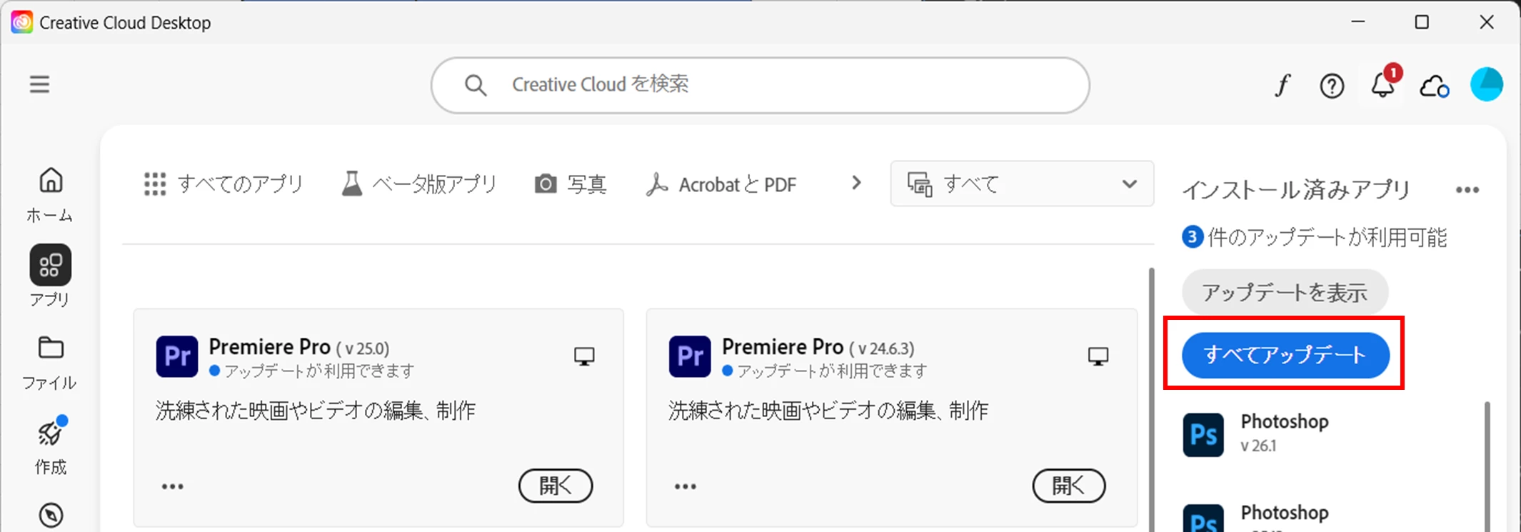 Pr初心者で初めてのPrのバージョン更新があり、特に何も気にせずに更新してしまいました。
