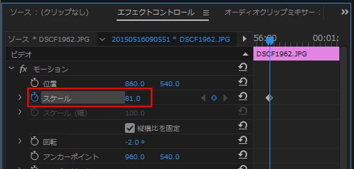 ビデオエフェクトのスケールがプログラムモニターでプレビューできない(静止画)