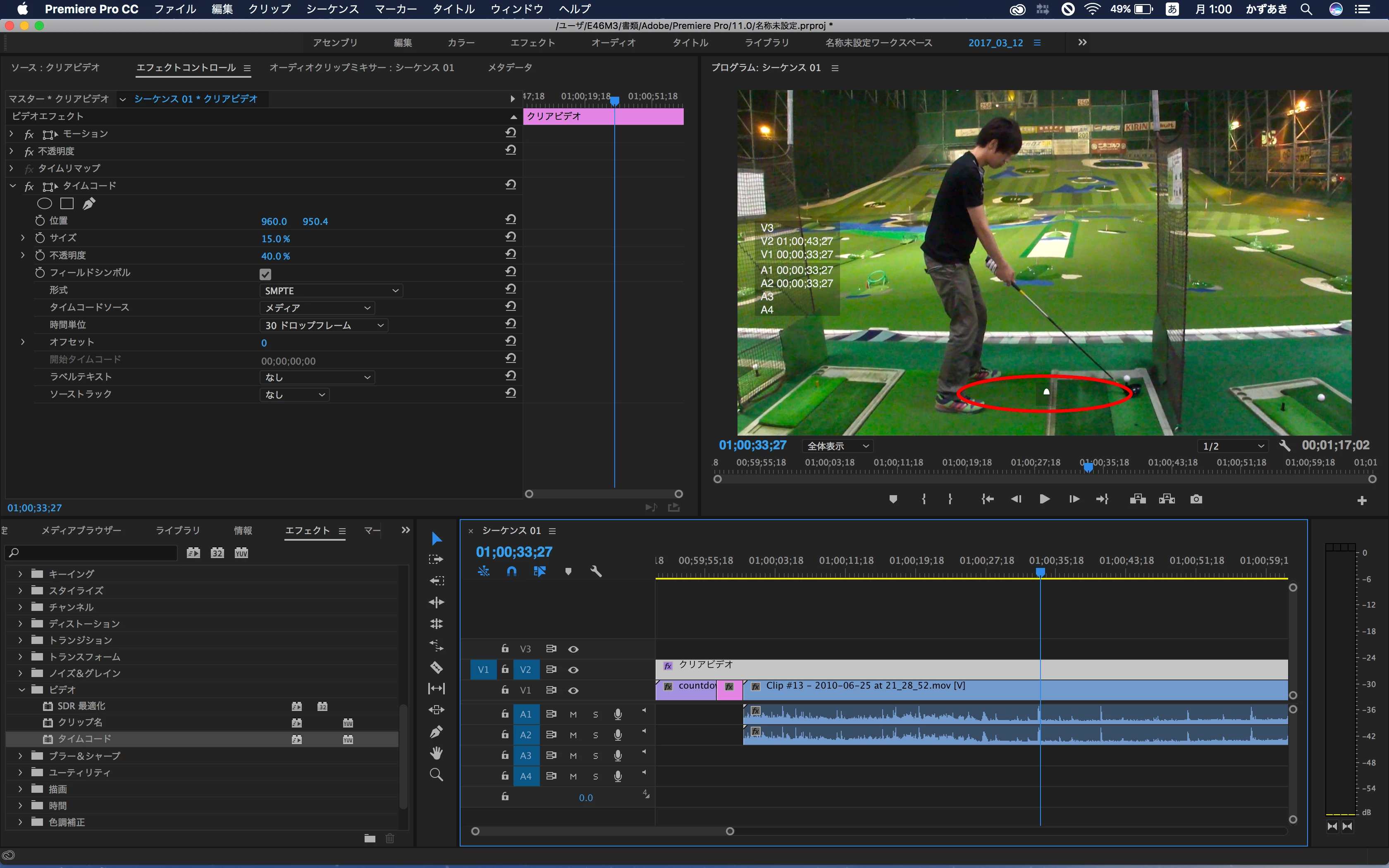 トラックの最上部にクリアビデオを配置してビデオエフェクトからビデオのタイムコードを適用しても