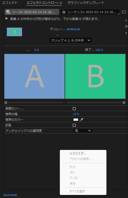 ビデオトランジションの値を変更したものを使いまわしたかったため、