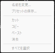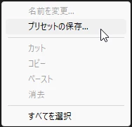 以下に添付した画像のように「プリセットの保存」が灰色塗りとなり押下できませんでした。