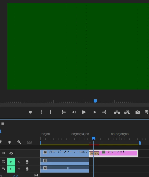 ちなみに私の手元の環境は昨晩Premiere pro 22.6.1と書いてしまっていたのですが正しくは22.6.2でして、下記画像のようにGPU高速処理(iGPUなのでOpenCLです)では正常に動作するものの、ソフトウエア処理では緑画面と元画面が点滅するような異常が現れております。