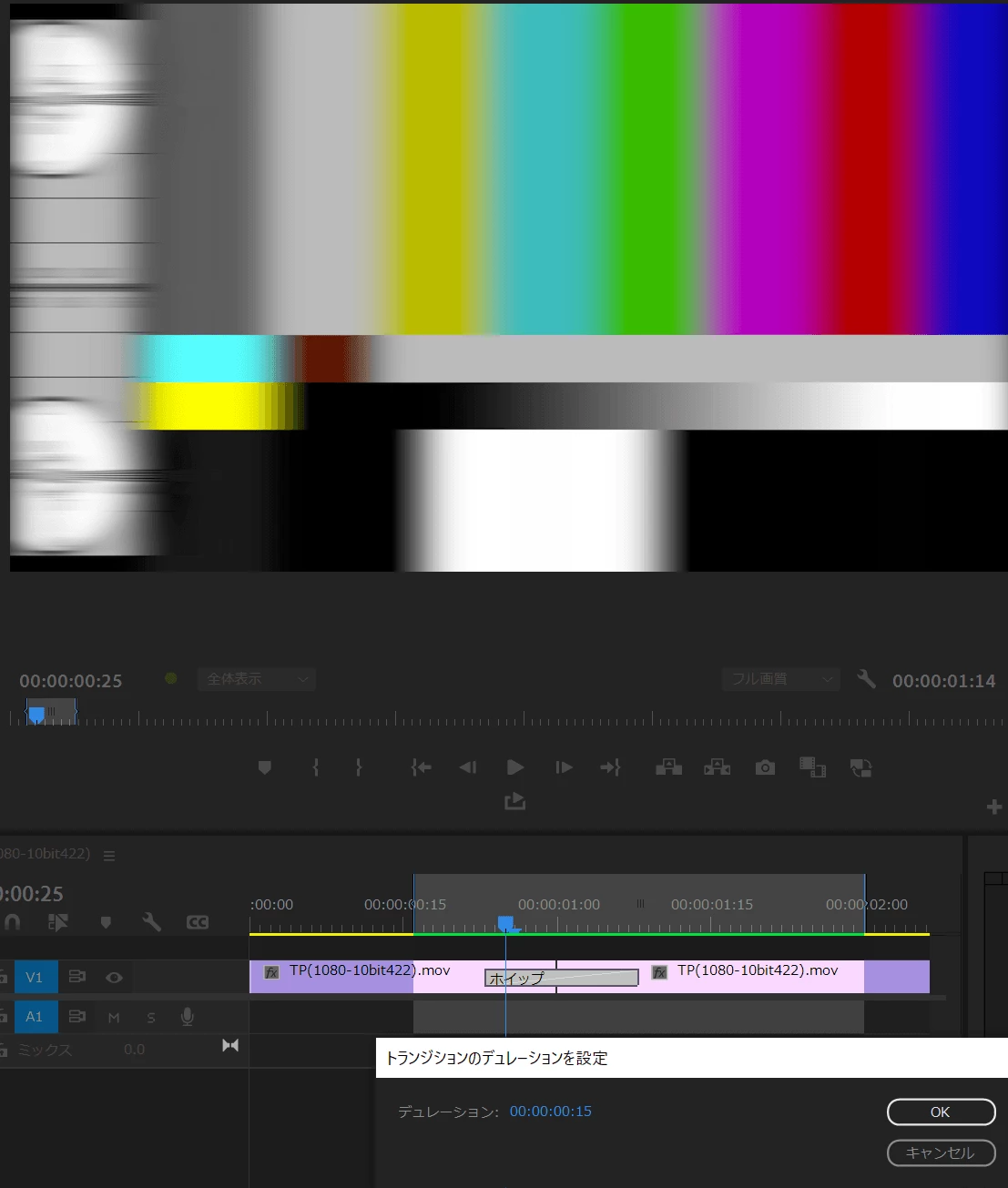 ビデオトランジションのホイップのみエラーになる