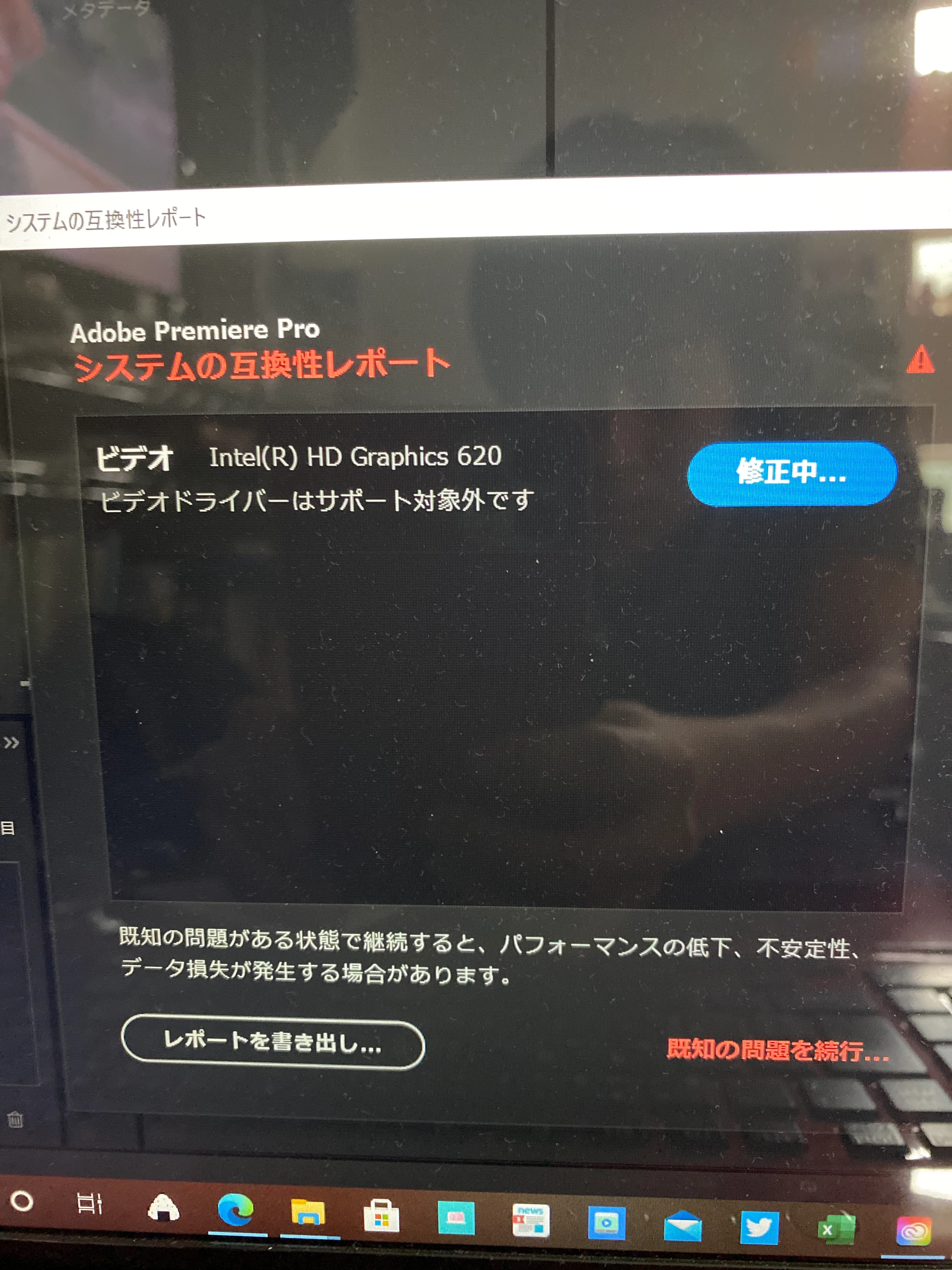 KKenji5FDCParticipantForum|Forum|5 years agoSeptember 22, 2020Questionビデオドライバーはサポート対象外ですForum|Forum|5 years agoSeptember 22, 20202 replies497 views画像のように画面が出てしまいます。修正中をクリックしても英語の説明しか出てこないので困ってます。あとキャプチャーボード(elgato HD60s)とobsで録画したビデオが読み込みできないのもコレが原因なのでしょうか? エラーまたは問題