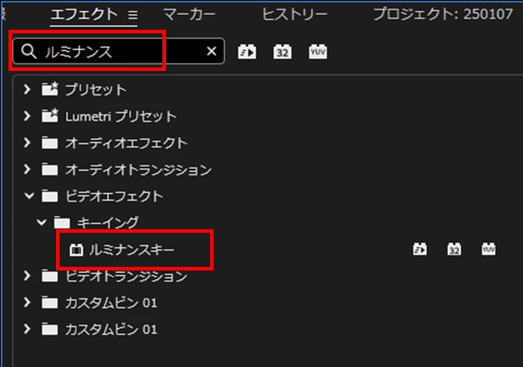 前日まで使えていたのですが、次の日プロジェクトを開くと『ビデオフィルターがありません : ルミナンスキー』と表示され、ルミナンスキーが適用されなくなっていました。