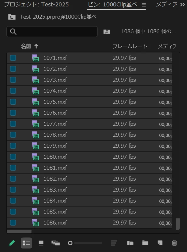 ビンで多数(1000以上)のClipを選択していると上部のメニュー「クリップ」を開くとタイムラグが発生する