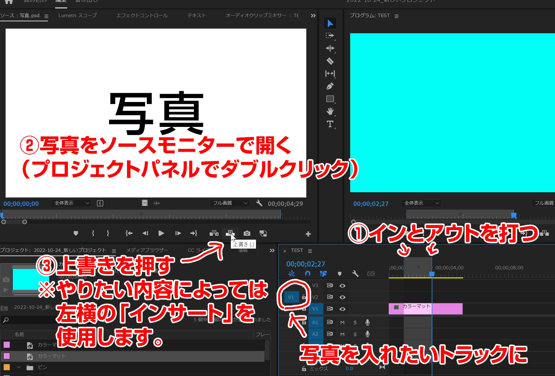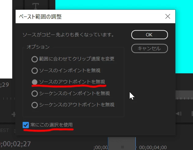 そこでタイムラインに素材(写真など)を入れる場合は指定した範囲だけの幅で挿入する方法はありますかという質問です。