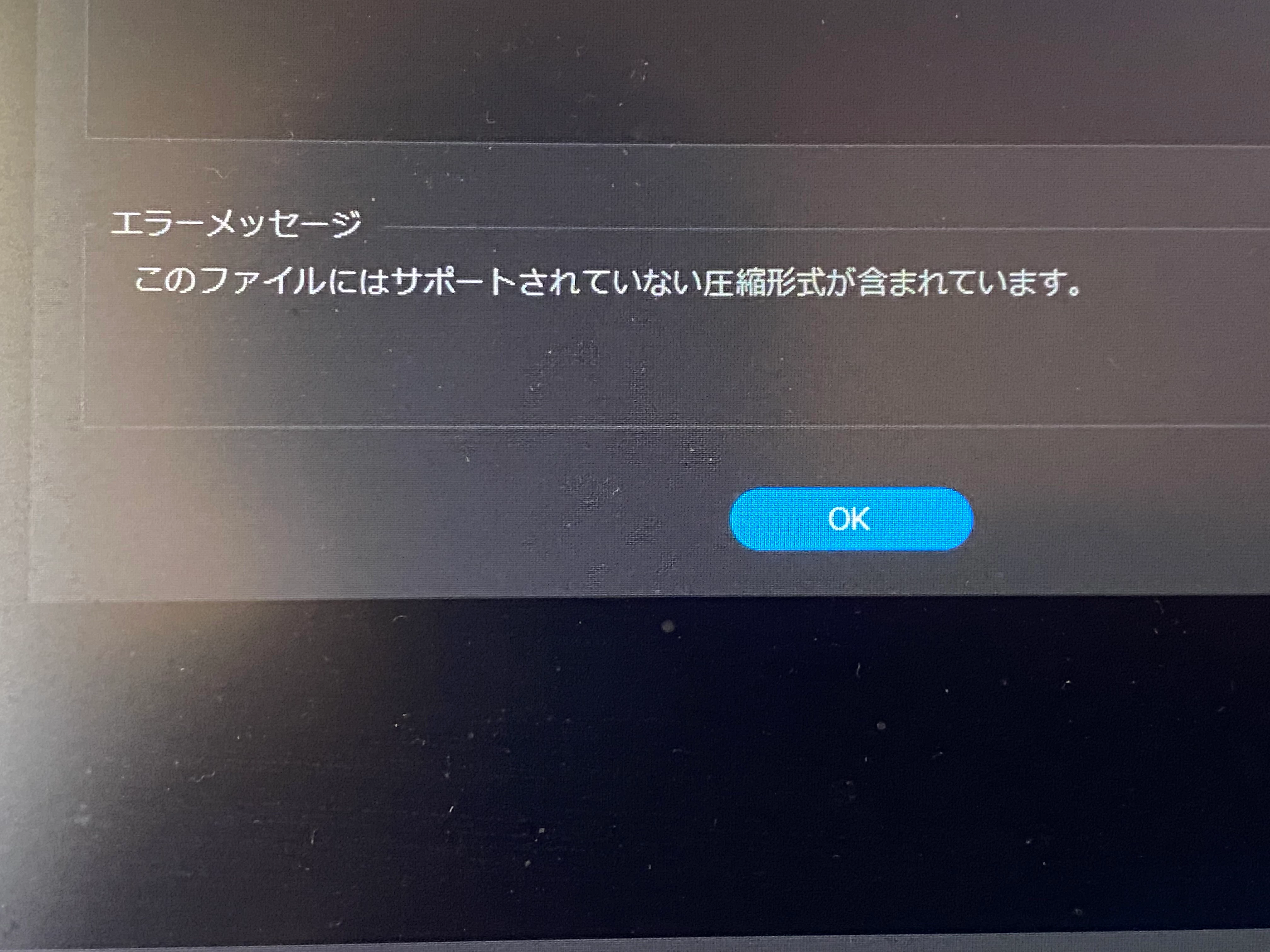サポートされない圧縮形式が含まれているとのこと。