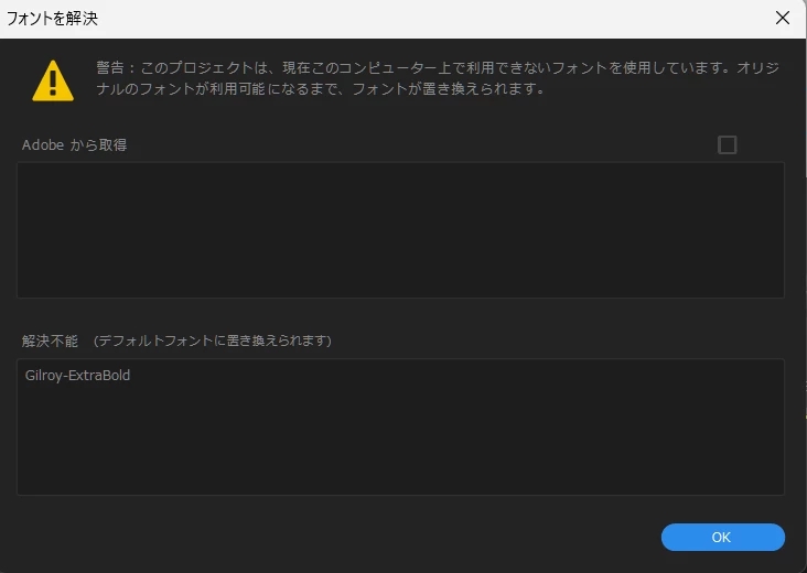 プロジェクトを起動時に「フォントを解決」というダイアログが出るようになりました。