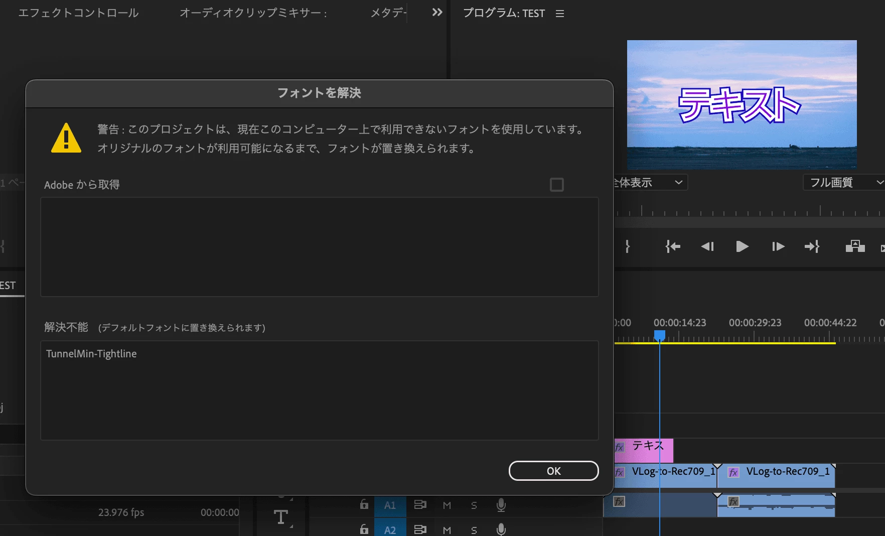 Premiere Proの機能(プロジェクトマネージャー)では、フォントファイルは収集されません。