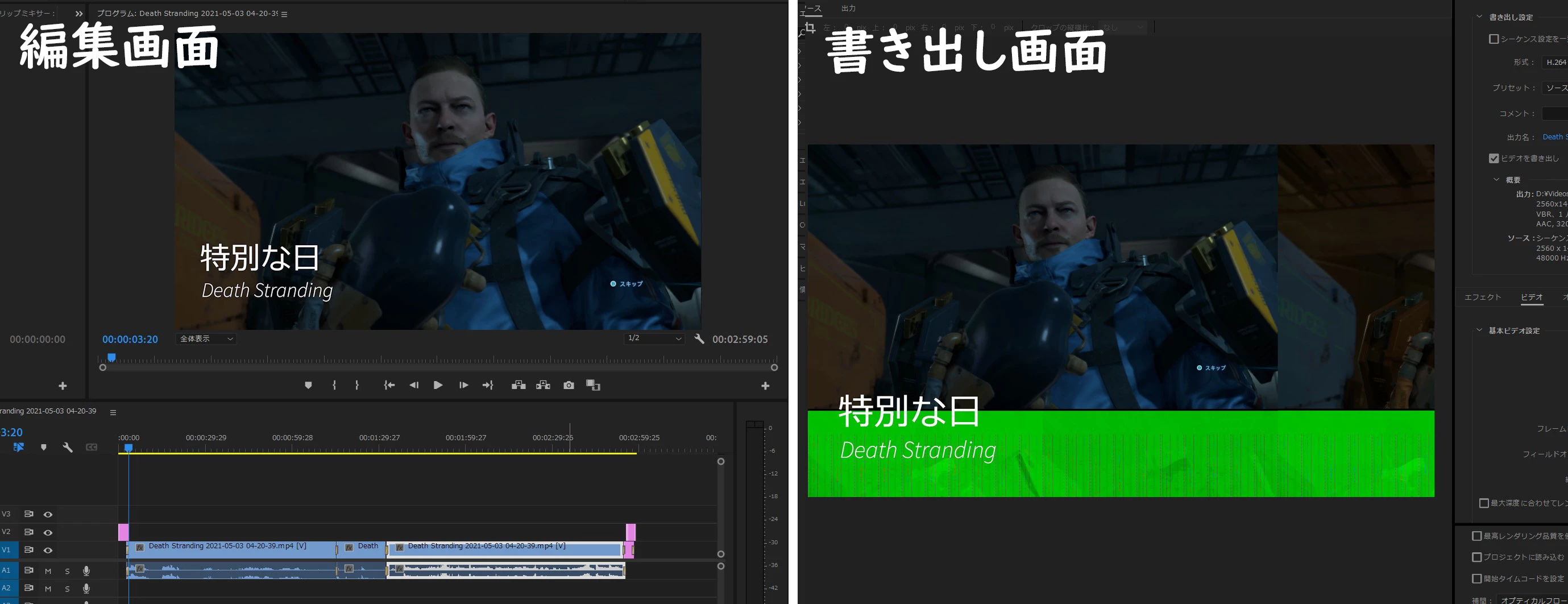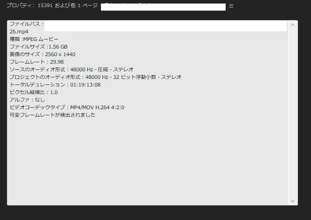 Windowsのエクスプローラー上で動画のプロパティを見ると1980x1020という解像度になっているようですが、Premiereのプロパティでは2560x1440と表示されており、そのあたりが問題なのかとも思っていますが、どのように対処してよいのかわかりません。