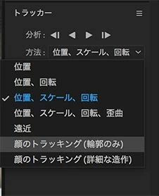 顔のトラックや看板や建物のトラッキングなどをトラックする「遠近」などメニューがあります。