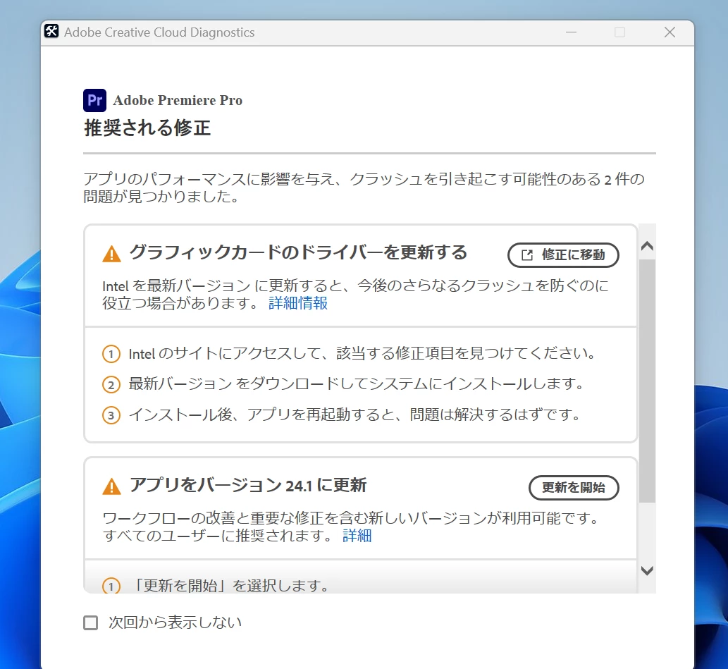 添付内容の「グラフィックカードのドライバーを更新する」を試してみたのですが、
