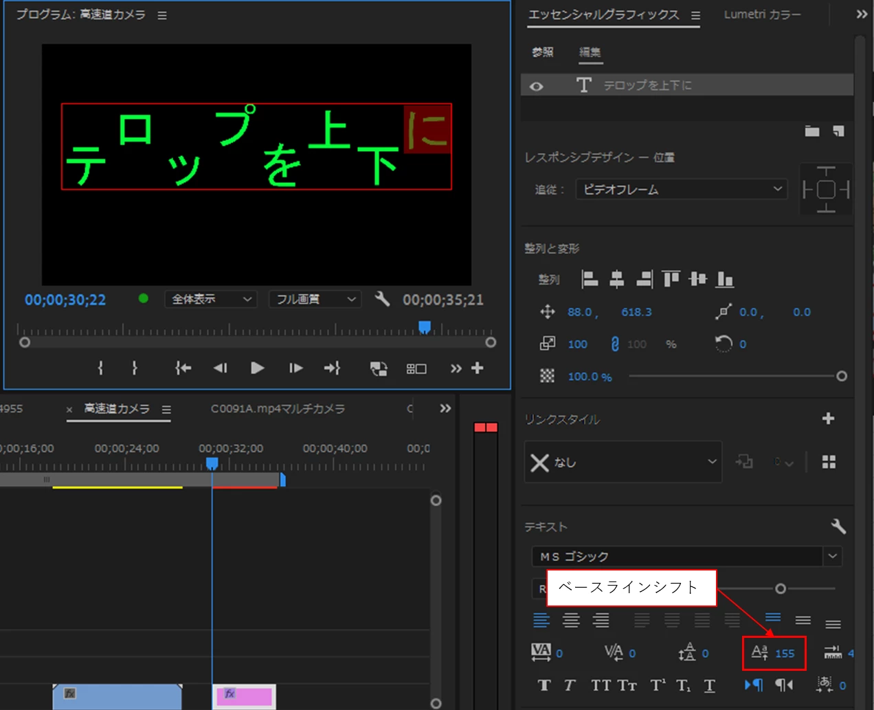 画像のようにテロップをジグザグ上下に配置したいのです。