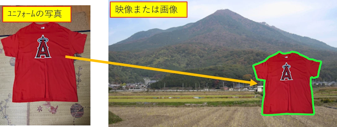 私、タンスの中を探したらエンジェルスのシャツが出てきましたので、写真に撮り、Premiere Proに読み込んで、位置・サイズを調整し、背景を抜いて枠を付けてみました。