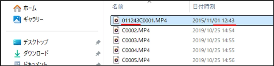 カメラは2台でファイル名は被っているため名前順ではバラバラになります。