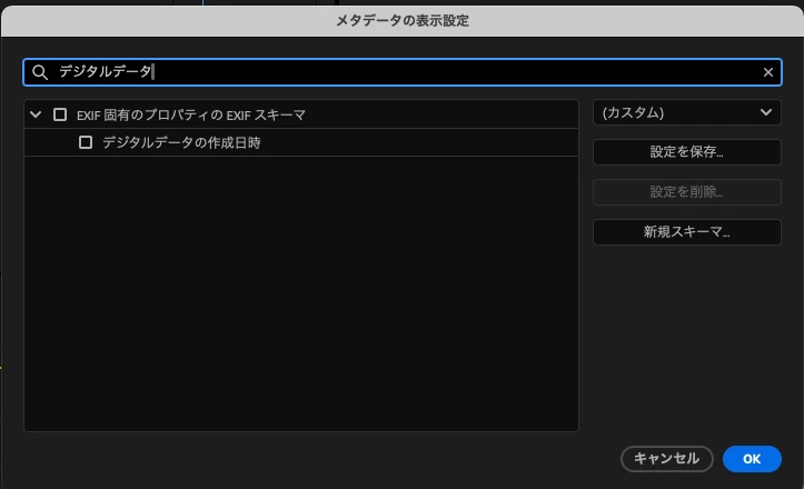 デジタルデータの作成日時の項目にチェックをつけて、(画像2)OKを押す。