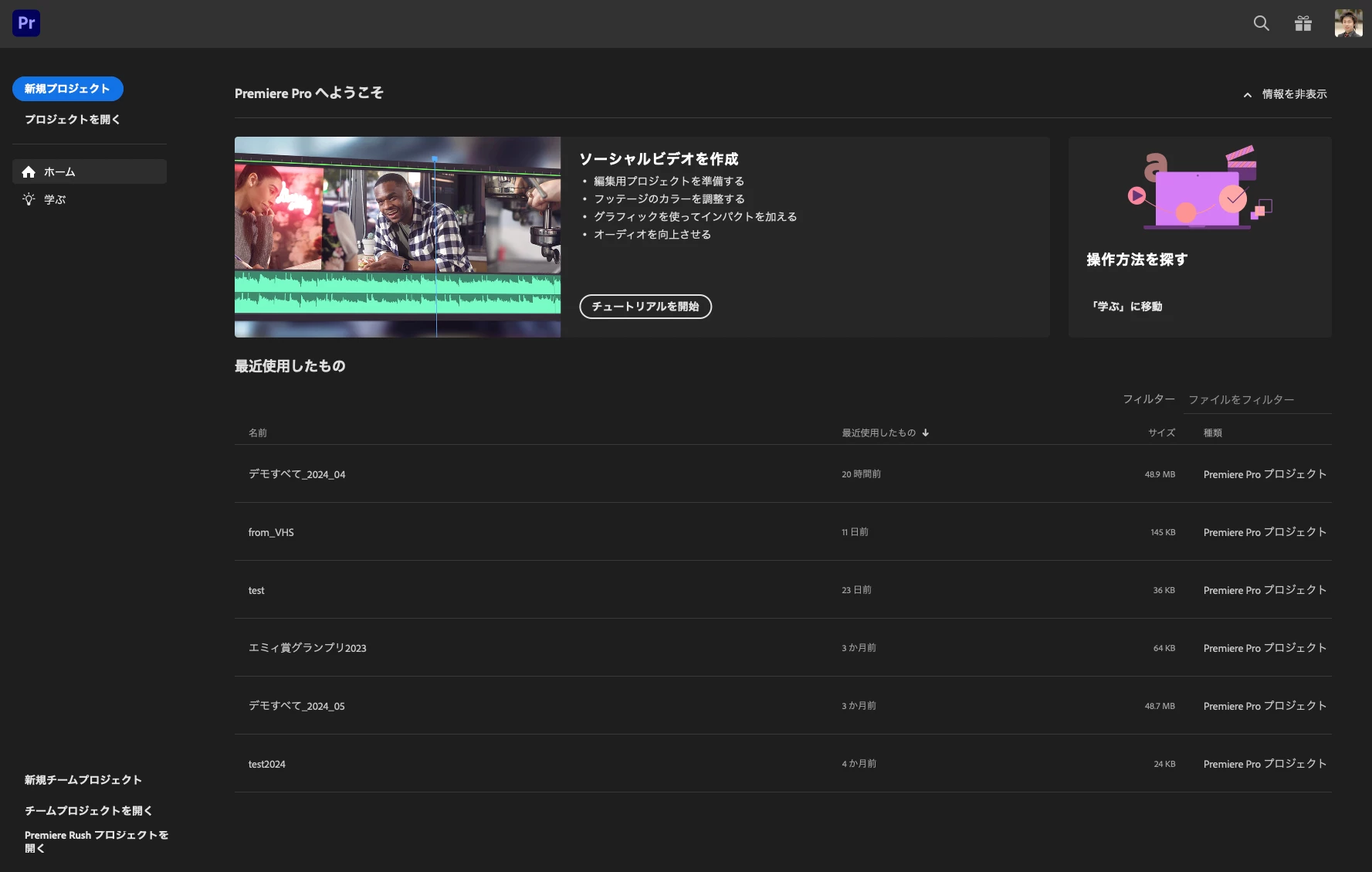 続きから編集をしようとプレミアプロを立ち上げたところ、