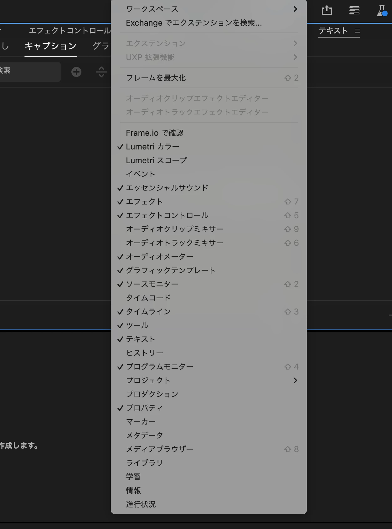 前者はテキストやシェイプ関係、後者はモーショングラフィックステンプレート関係になっています。