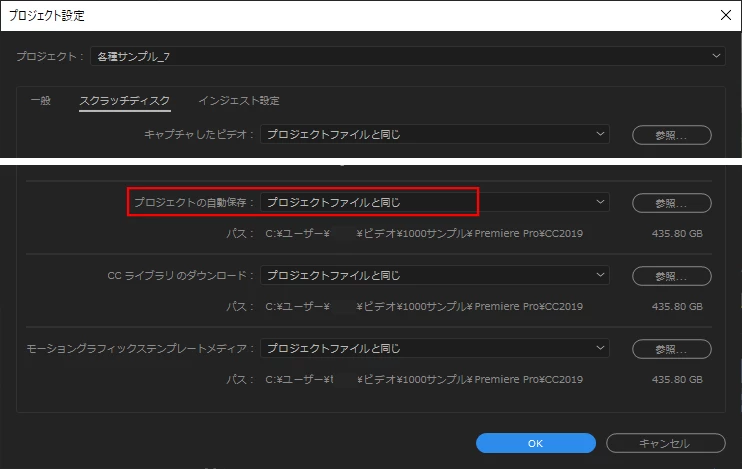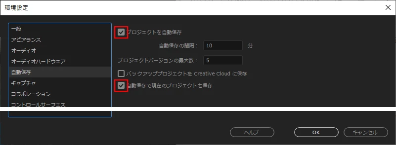 オートセーブ自体のプロジェクトファイルが全てないので