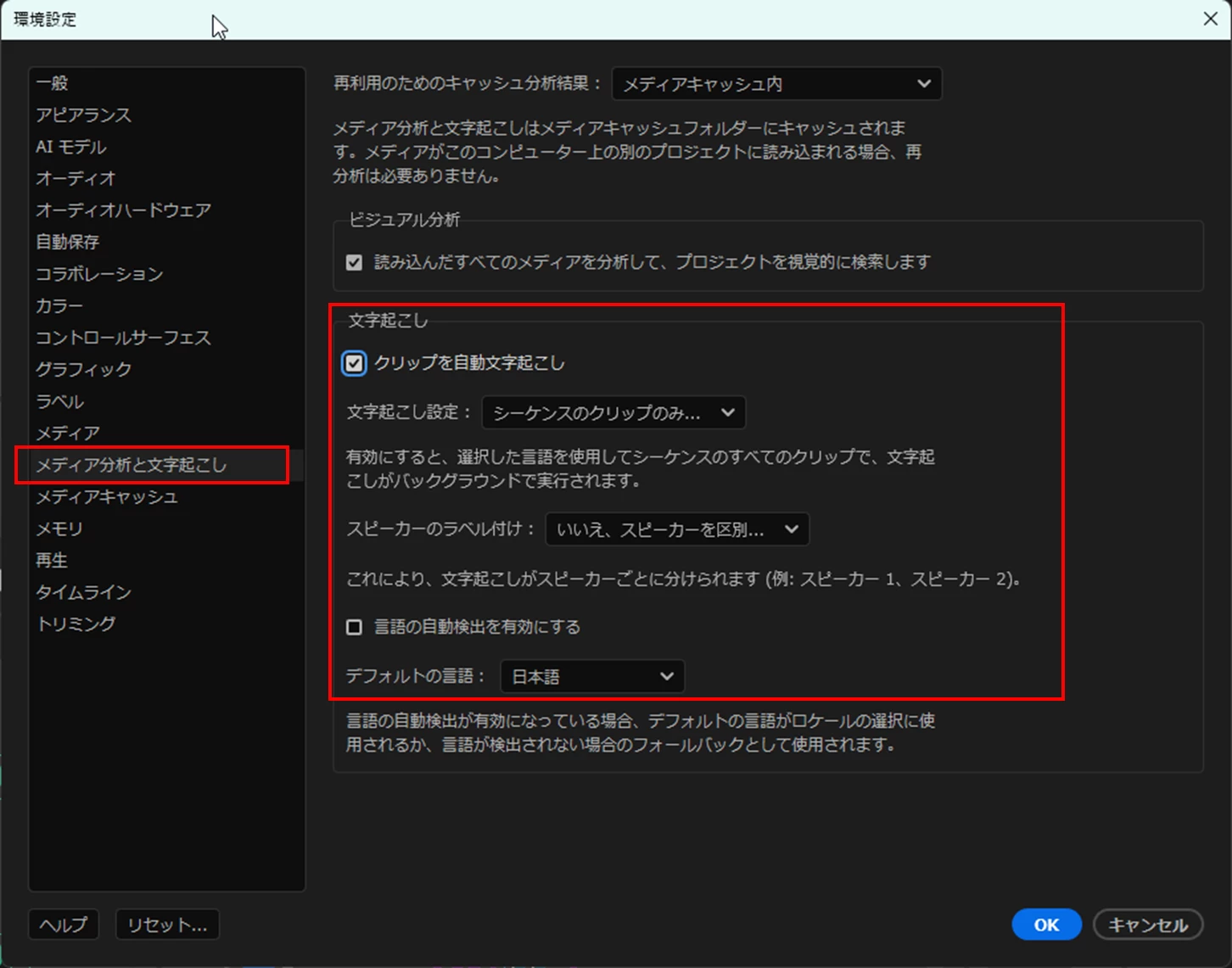プレミアプロ 文字起こしをした後、グラフィックに変換できない。