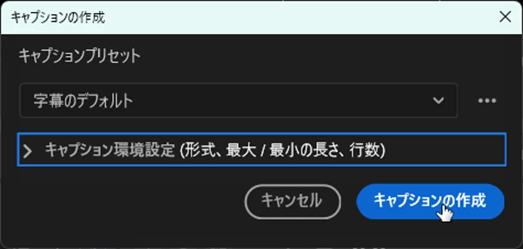 ②「キャプションの作成」ウィンドウが表示されますので、そのまま「キャプションの作成」ボタンをクリックします。
